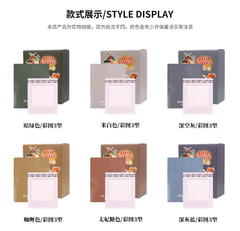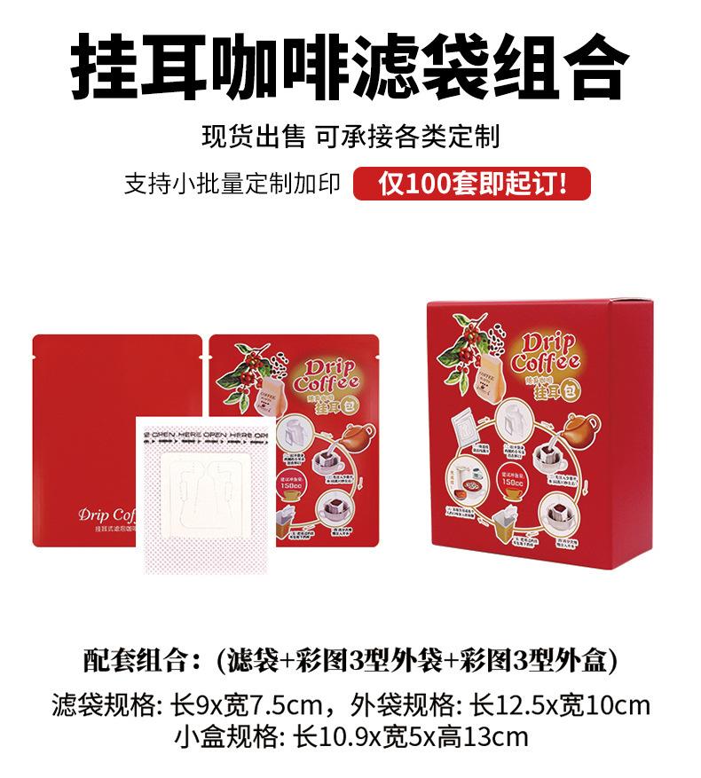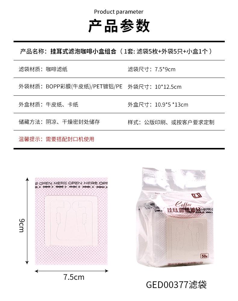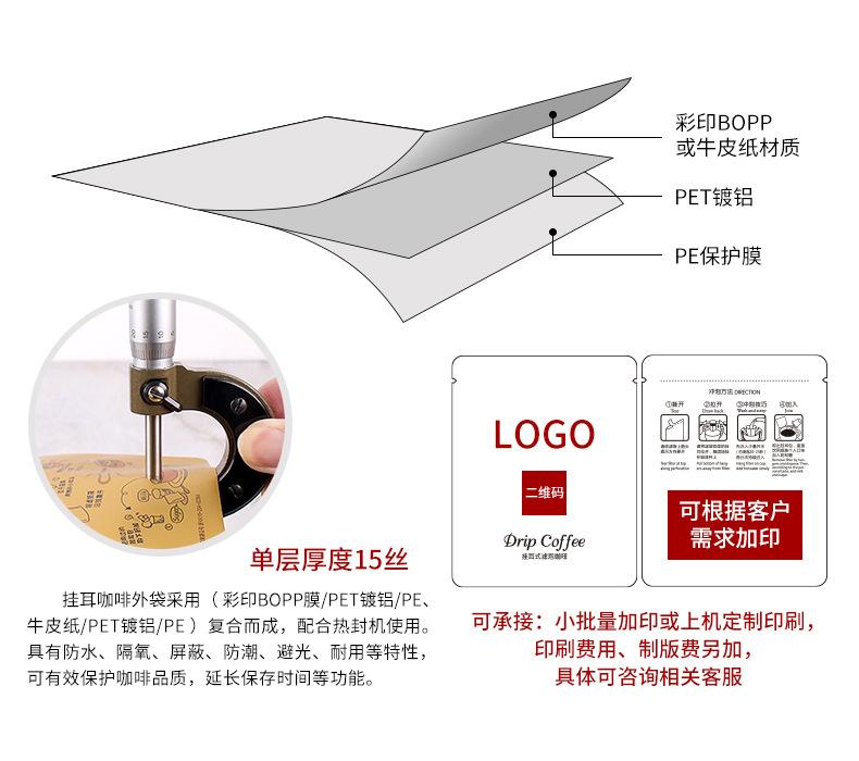 Intención 5 paquetes en el paquete de oído 10 juegos de bolsa de filtro de café colgante para la oreja bolsa de papel de aluminio caja de embalaje colgante para la oreja esmerilada transparente