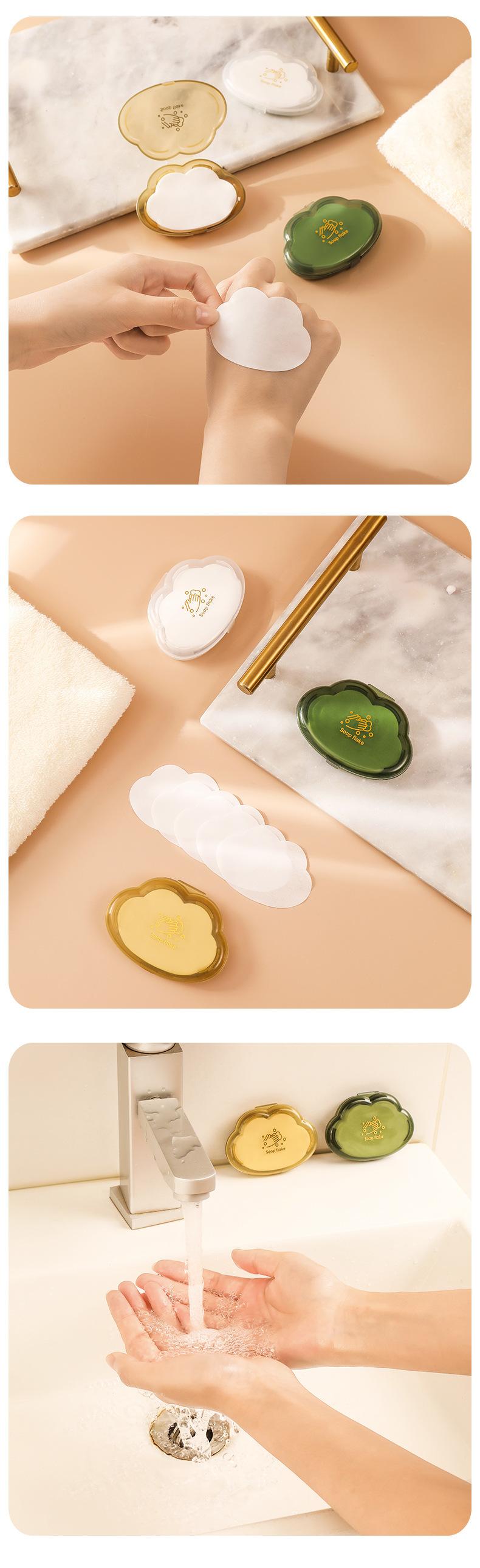 Pastillas de jabón portátiles en caja para estudiantes Creative Cloud, pastillas desechables para el lavado de manos de niños, pastillas de jabón de papel mini