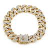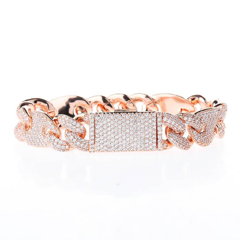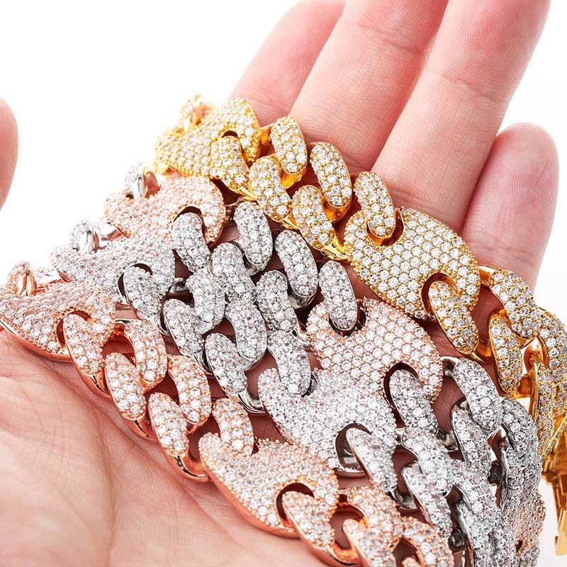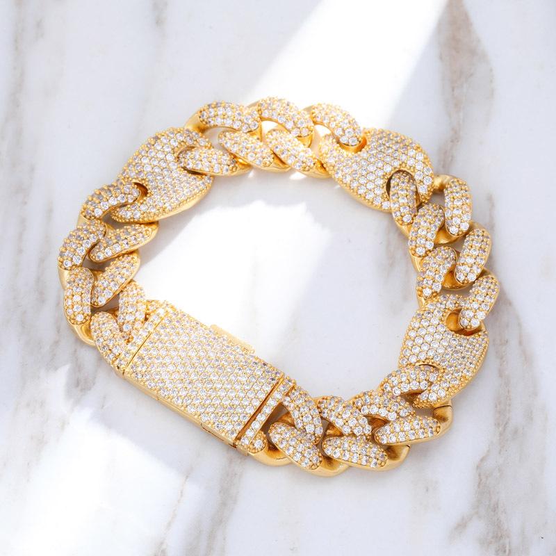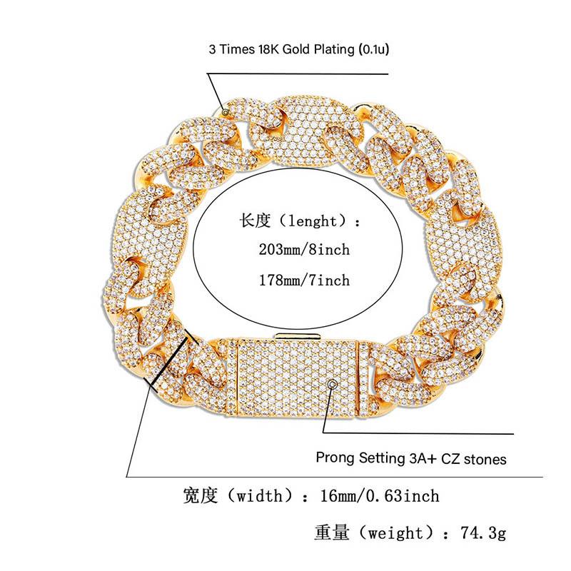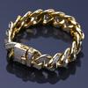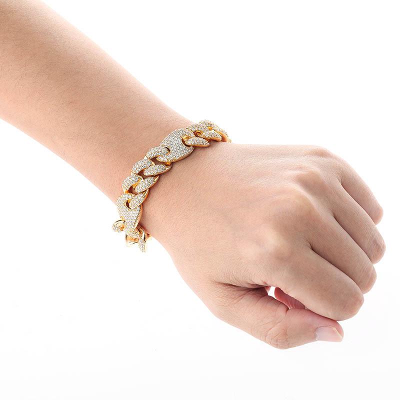 | Pulsera cubana de Miami con hebilla de joyería europea y americana de hip-hop para hombre con circonitas chapadas en oro, estilo hip-hop con cierre de hierro. |