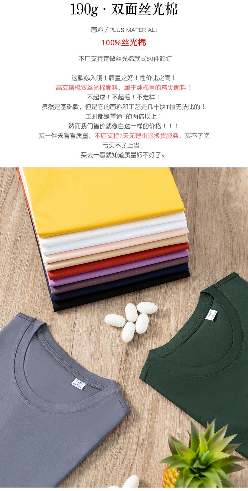 Camiseta de algodón mercerizado con amoníaco líquido de doble cara, de alta gama, 190 g, de alta densidad, para mujer, de verano, de manga corta, de algodón, combinable, blanca, con cuello redondo.
