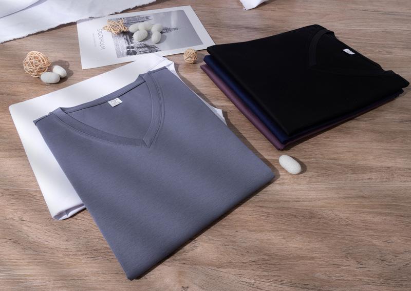 Camiseta de Manga Corta Cálida Zhen De Rong Yifeisi para Hombre Cuello Redondo Algodón de Fibra Larga Acrílico 5A Antibacteriana Camiseta Cálida de Invierno para Hombre