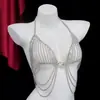 Cadena de pecho de borla de diamantes completa exagerada europea y americana, accesorios de bikini de pedrería para fiesta de club nocturno, cadena corporal de moda sexy para mujeres