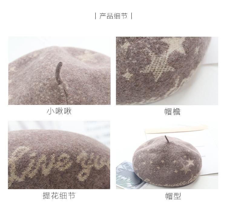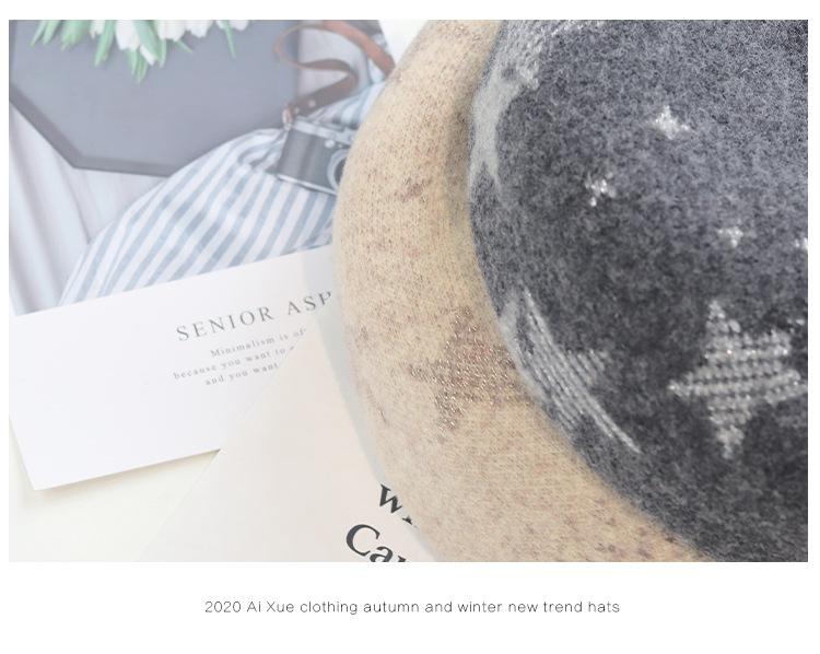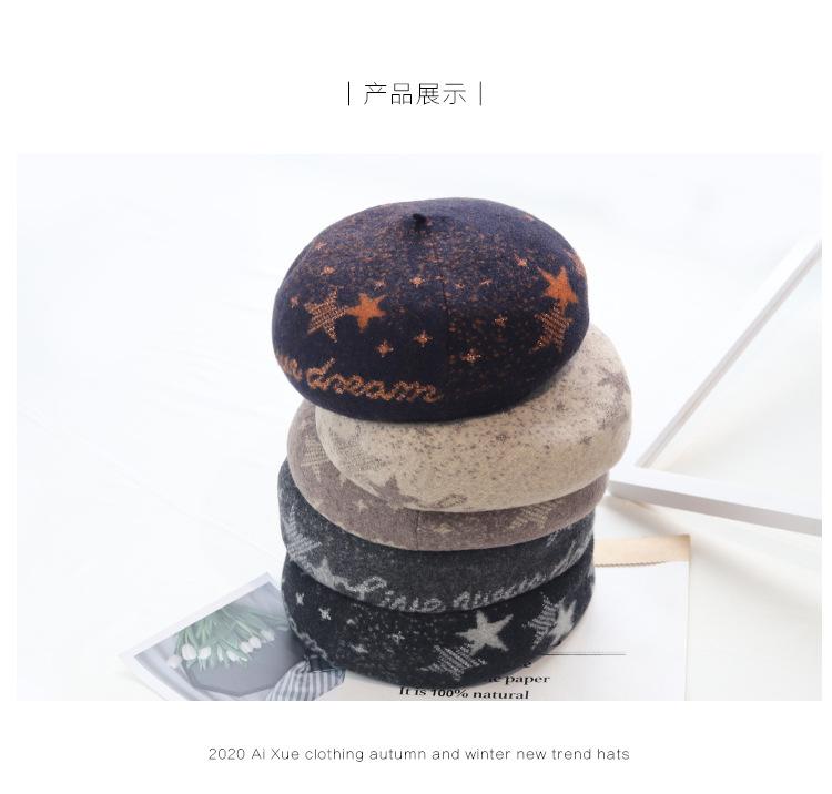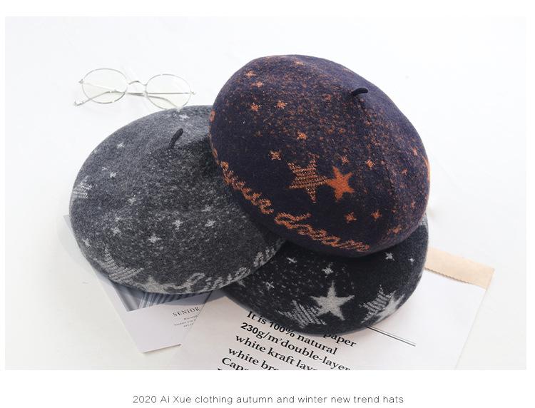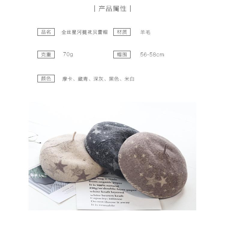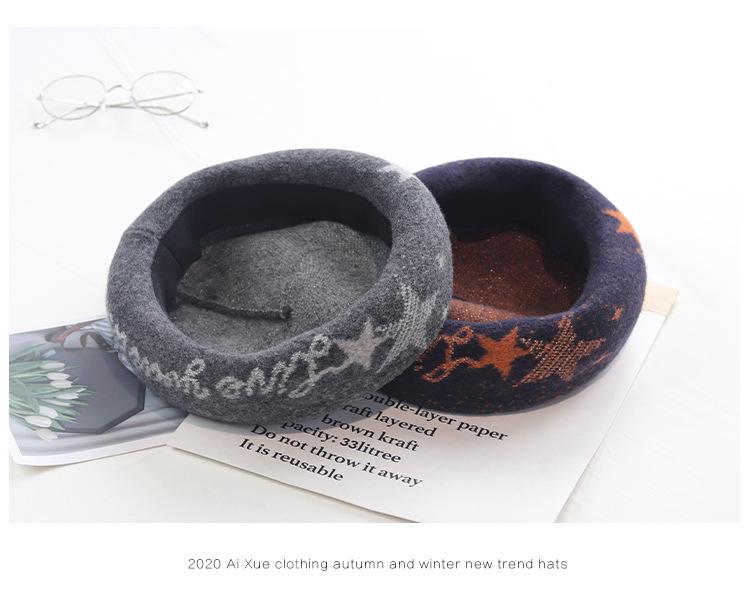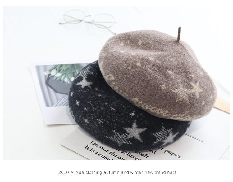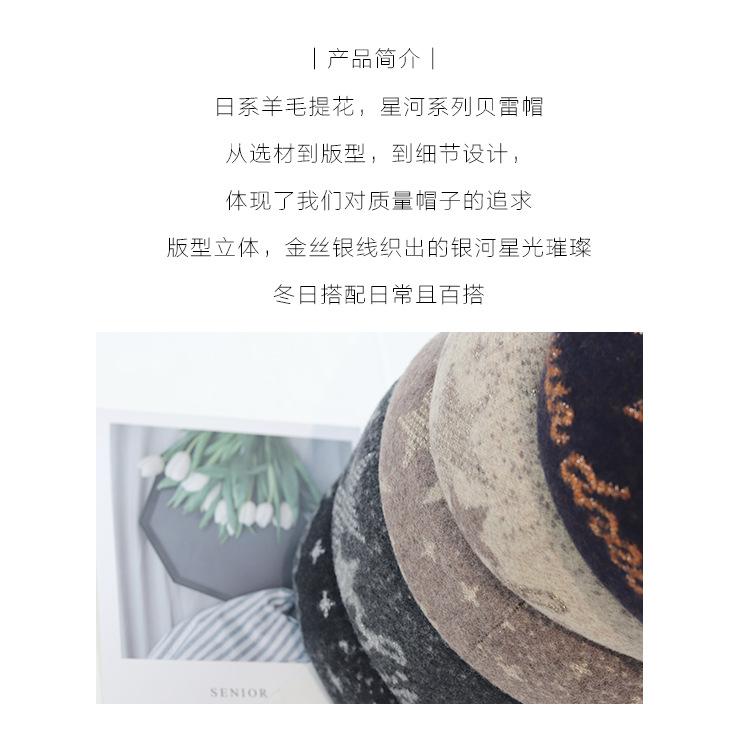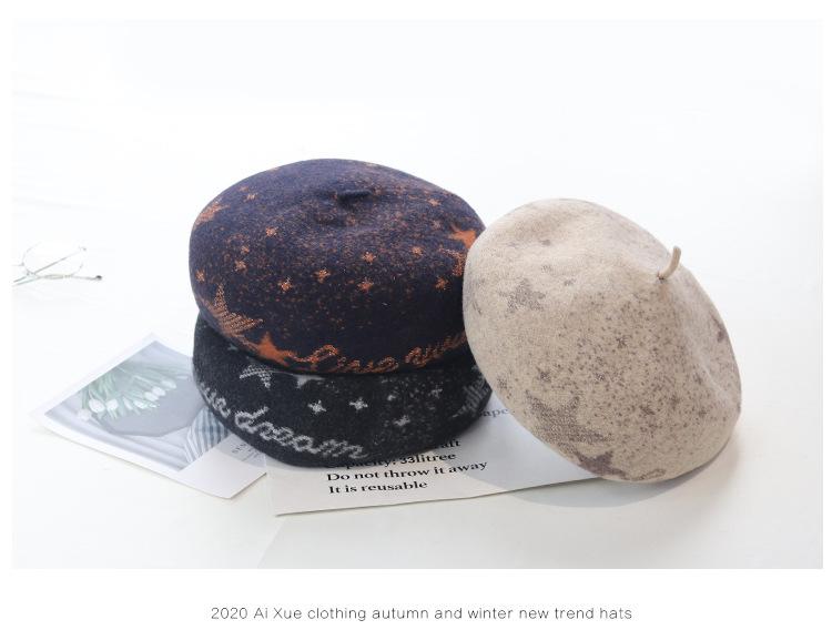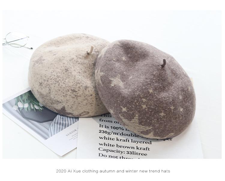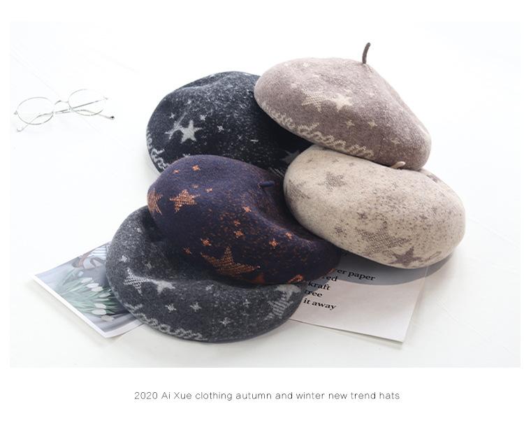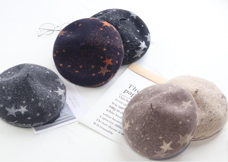 Boina de Lana de Otoño e Invierno para Mujer Sombrero de Lana Jacquard Galaxia Sombrero de Moda que Muestra la Cara Pequeño Versátil Moderno Sombrero para el Frío