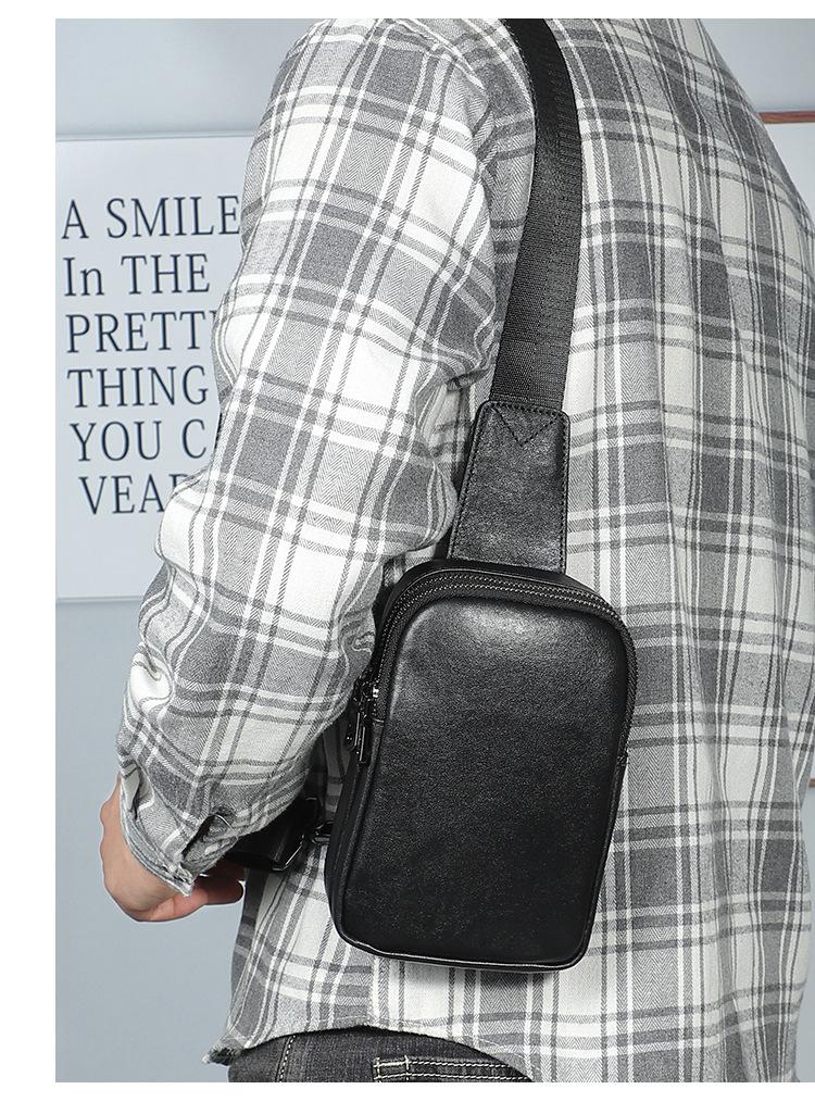 Compra Nuevo bolso de pecho de cuero genuino para hombre, bolso de hombro deportivo informal, bolso cruzado de primera capa de piel de vaca, mochila de viaje para exteriores al por mayor en Joom.pro