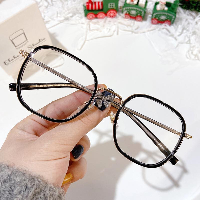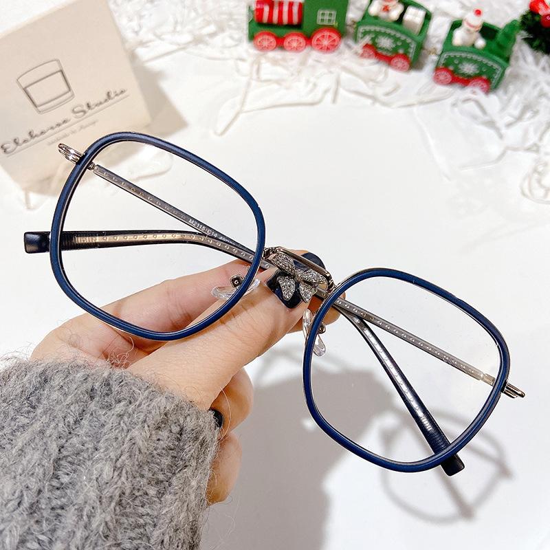 M2115 Nuevo Armazón Cuadrado Grande para Niñas, Estilo Retro Simple, Cara Grande, Espejo Plano Pequeño, Sin Graduación, Se Puede Combinar con Moda