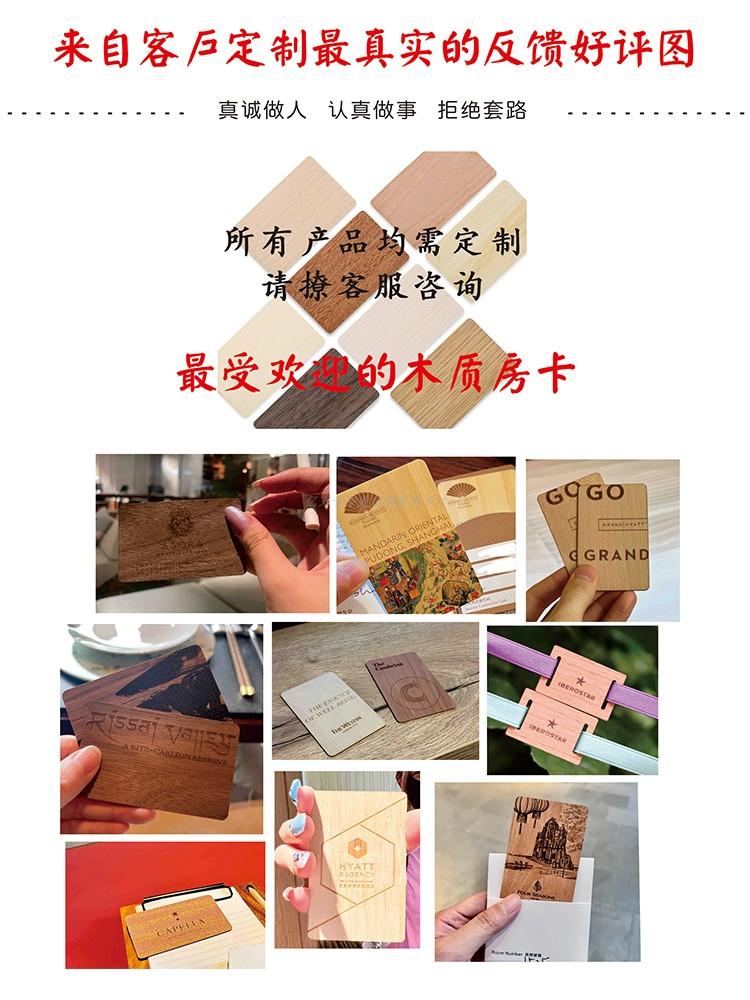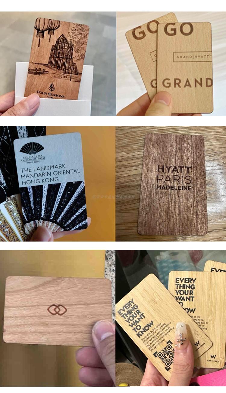 Tarjeta de puerta de hotel personalizada con sensor de habitación y desayuno, tarjeta de madera con chip IC en relieve, tarjeta de visita NFC, tarjeta de membresía