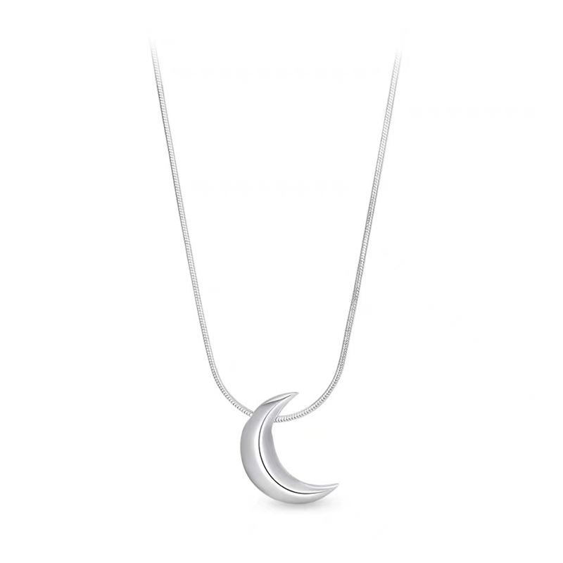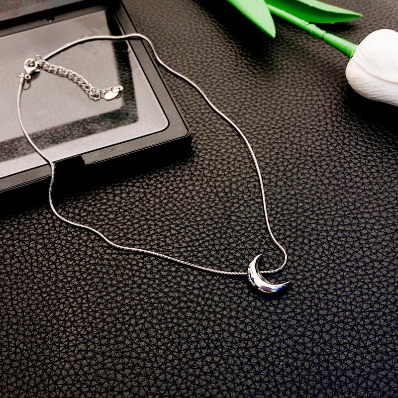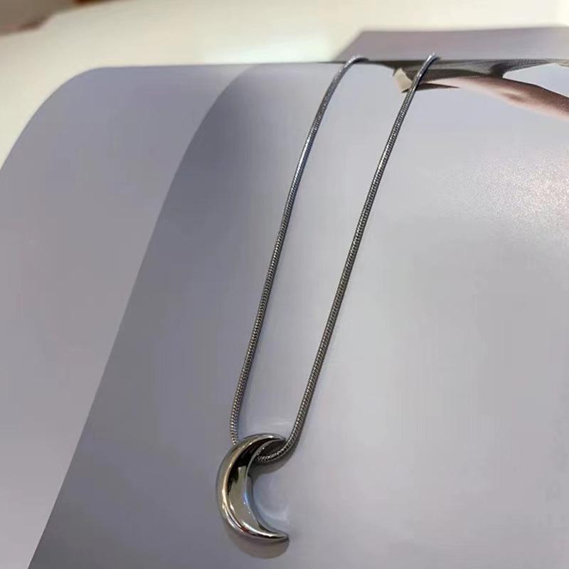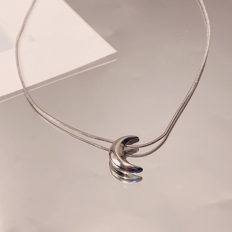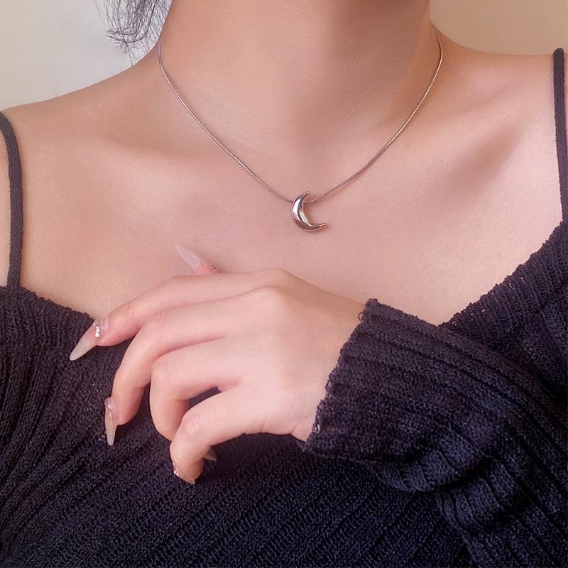 Collar de luna sencillo y combinable para mujer, exquisito collar de cadena de clavícula de acero y titanio plateado de estilo moderno y de alta gama, joyería