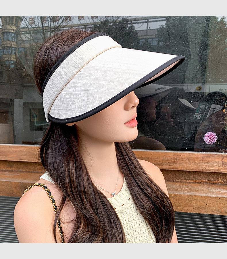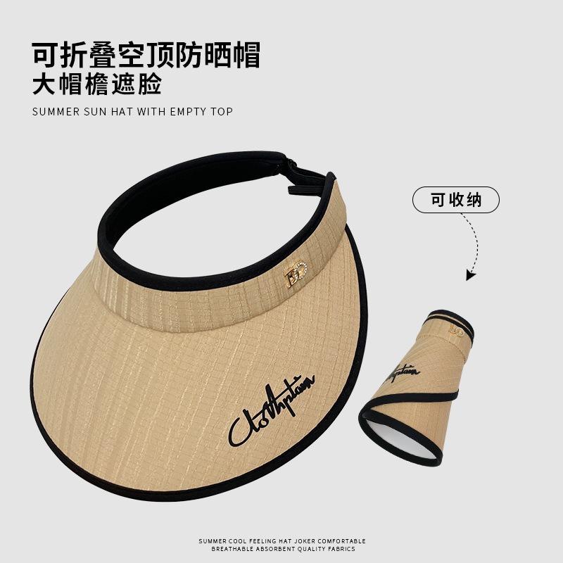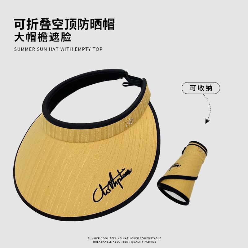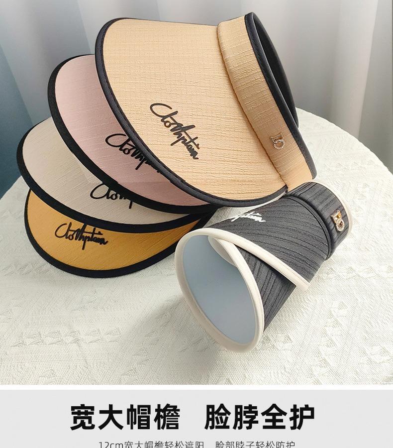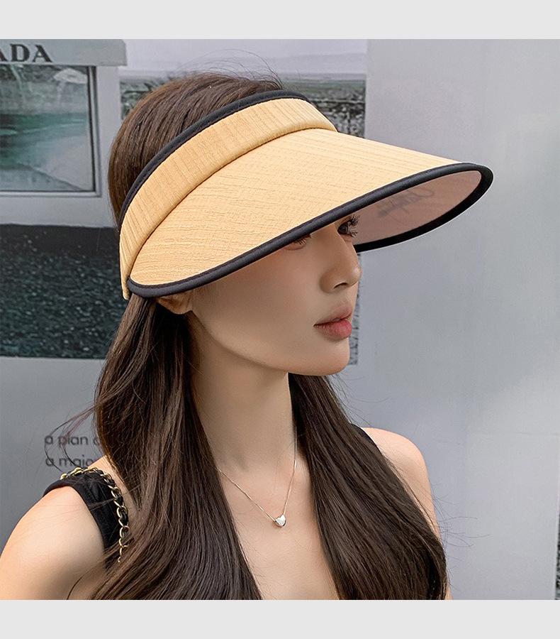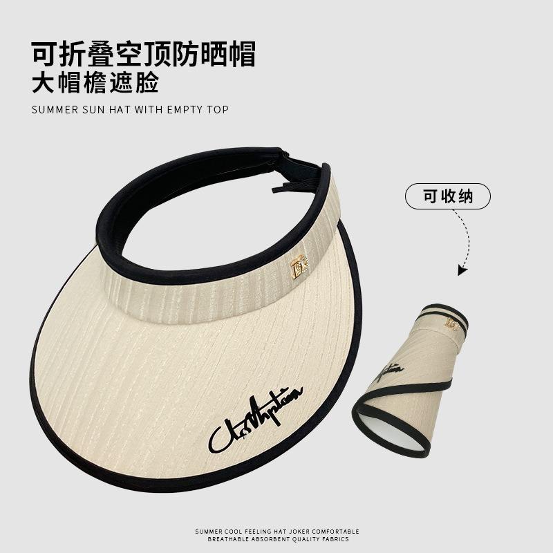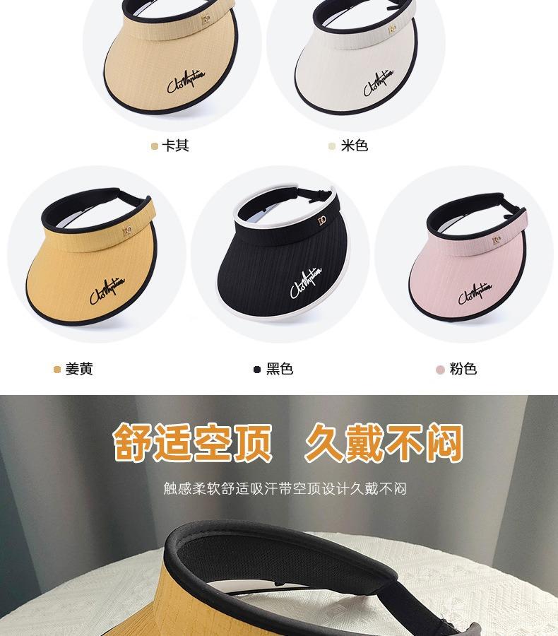 Sombrero de Visera Vacía de Verano para Mujer para Exterior, Playa, Protección Solar, Anti-UV, Ala Ancha, Transpirable, Cubre Cara