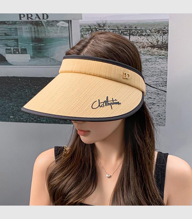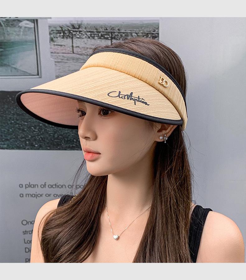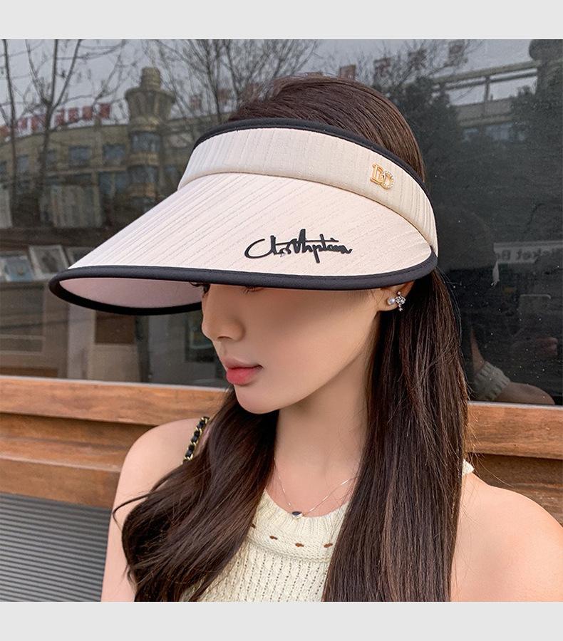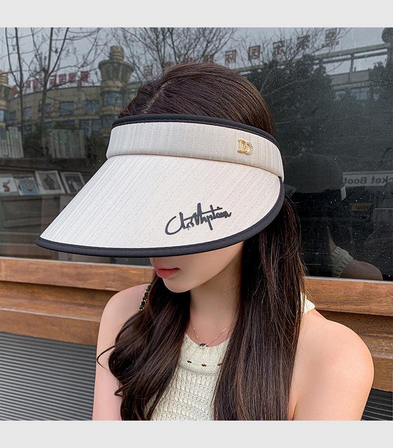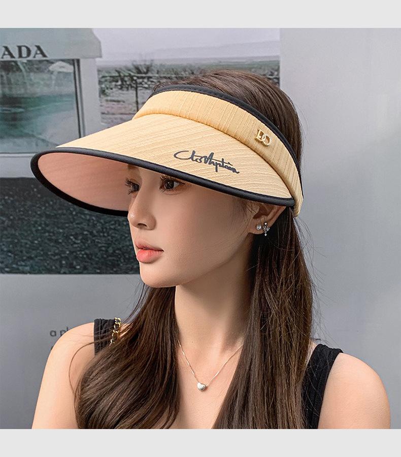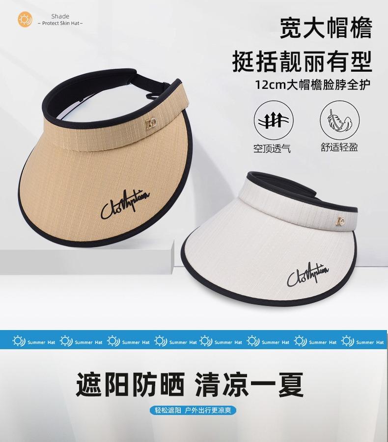 Sombrero de Visera Vacía de Verano para Mujer para Exterior, Playa, Protección Solar, Anti-UV, Ala Ancha, Transpirable, Cubre Cara