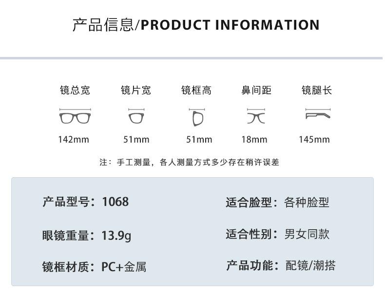 | Danyang gafas ojo de gato mujer anti luz azul retro montura de gafas lisas marrón frío miopía montura TR90 de alta gama ¥8.00 Compre ya | T7157 nueva versión coreana ins montura grande gafas para miopía hombres y mujeres montura cuadrada montura de gafas lisas sin maquillaje net red gafas delgadas ¥11.00 Compre ya | Nuevo estilo anteojos lisos estilo caliente moda callejera disparo transfronterizo ojo de gato Europeo y Americano montura óptica color degradado anti-luz azul TQ5740 ¥13.00 Compre ya | T7182 Versión coreana de montura redonda delgada ligera para miopía para mujer, maquillaje rojo Xiaohongshu literario, gafas planas de tendencia para hombre ¥12.00 Compre ya | |