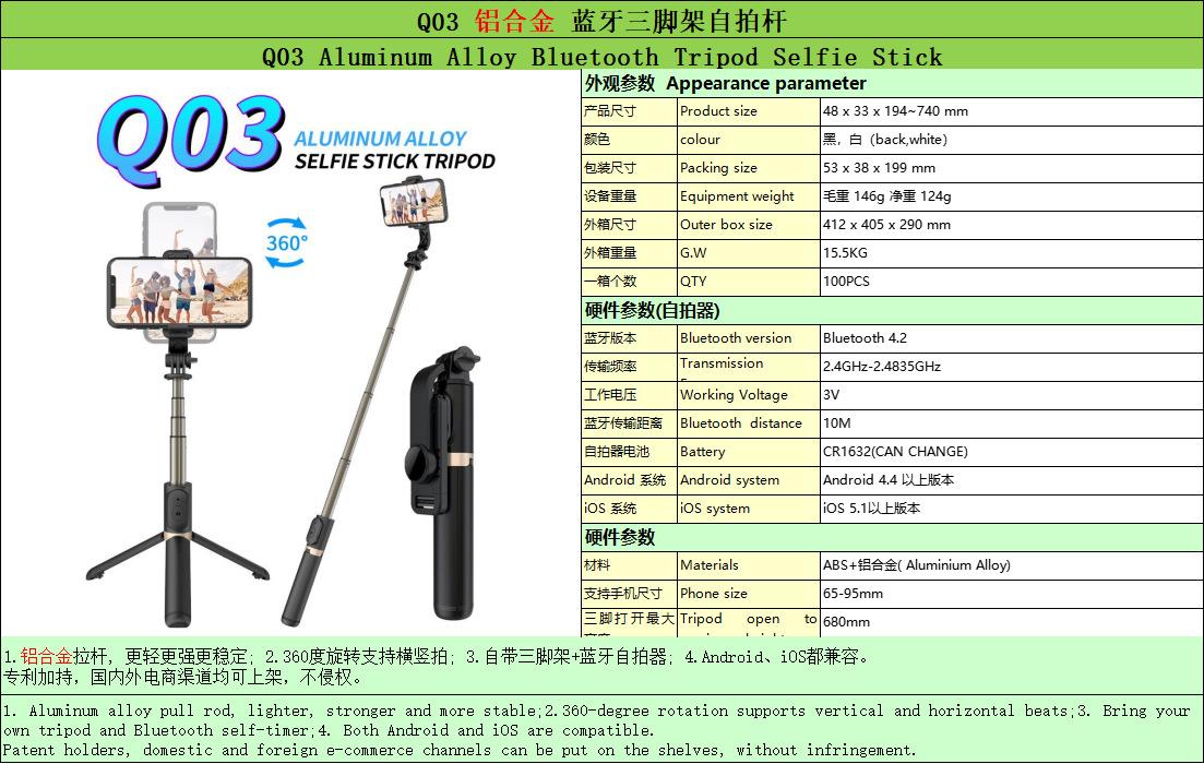Palo selfie Bluetooth TOKQI con trípode para palo selfie Q03 soporte para teléfono móvil multifunción Soporte de anclaje para fotos Universal