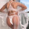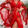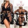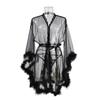 Exportación Transfronteriza Camisón Sexy de Encaje Malla Transparente Costuras de Piel Puños Grandes Bata Ropa para el Hogar Venta al por Mayor 315