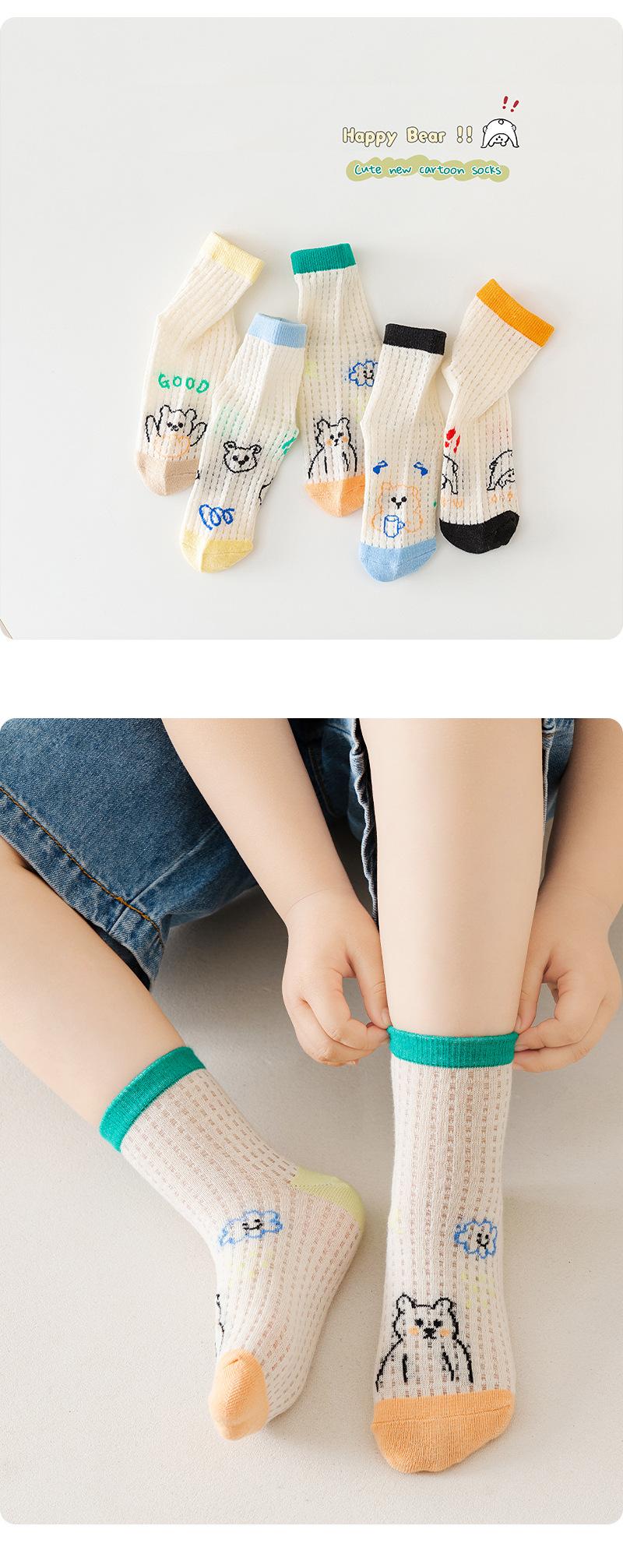 Calcetines para Niños Verano Nuevo 2025 Nuevo Malla Oso de Dibujos Animados Niños y Niñas Calcetines Media Pantorrilla Delgados Calcetines de Estudiante