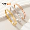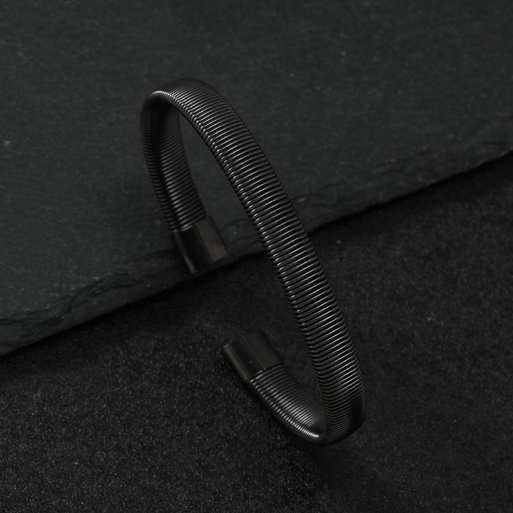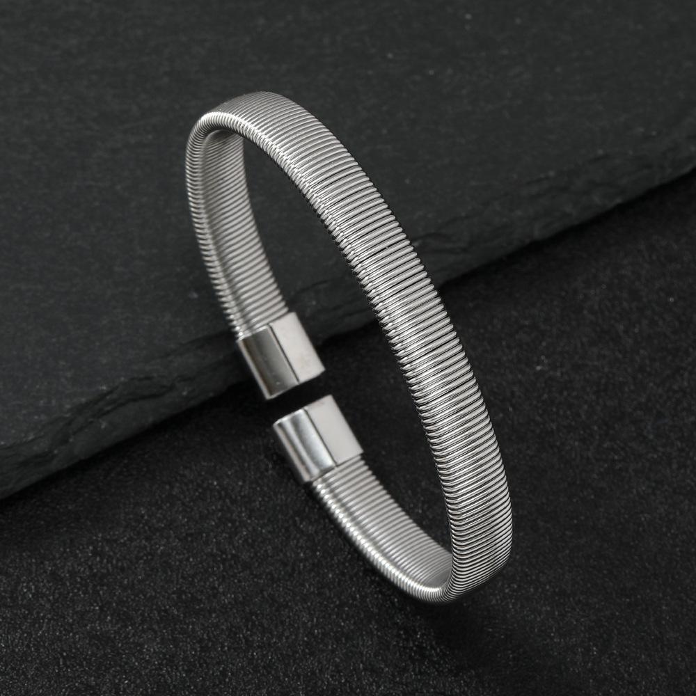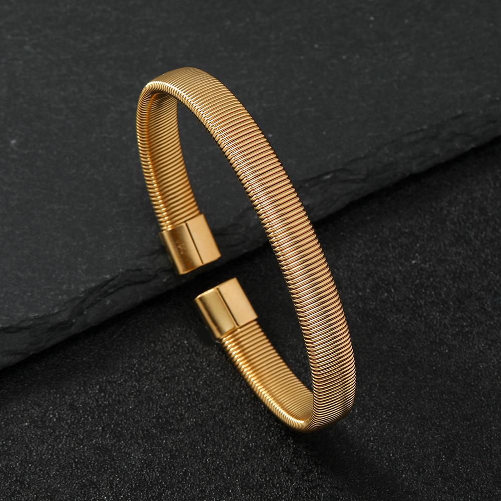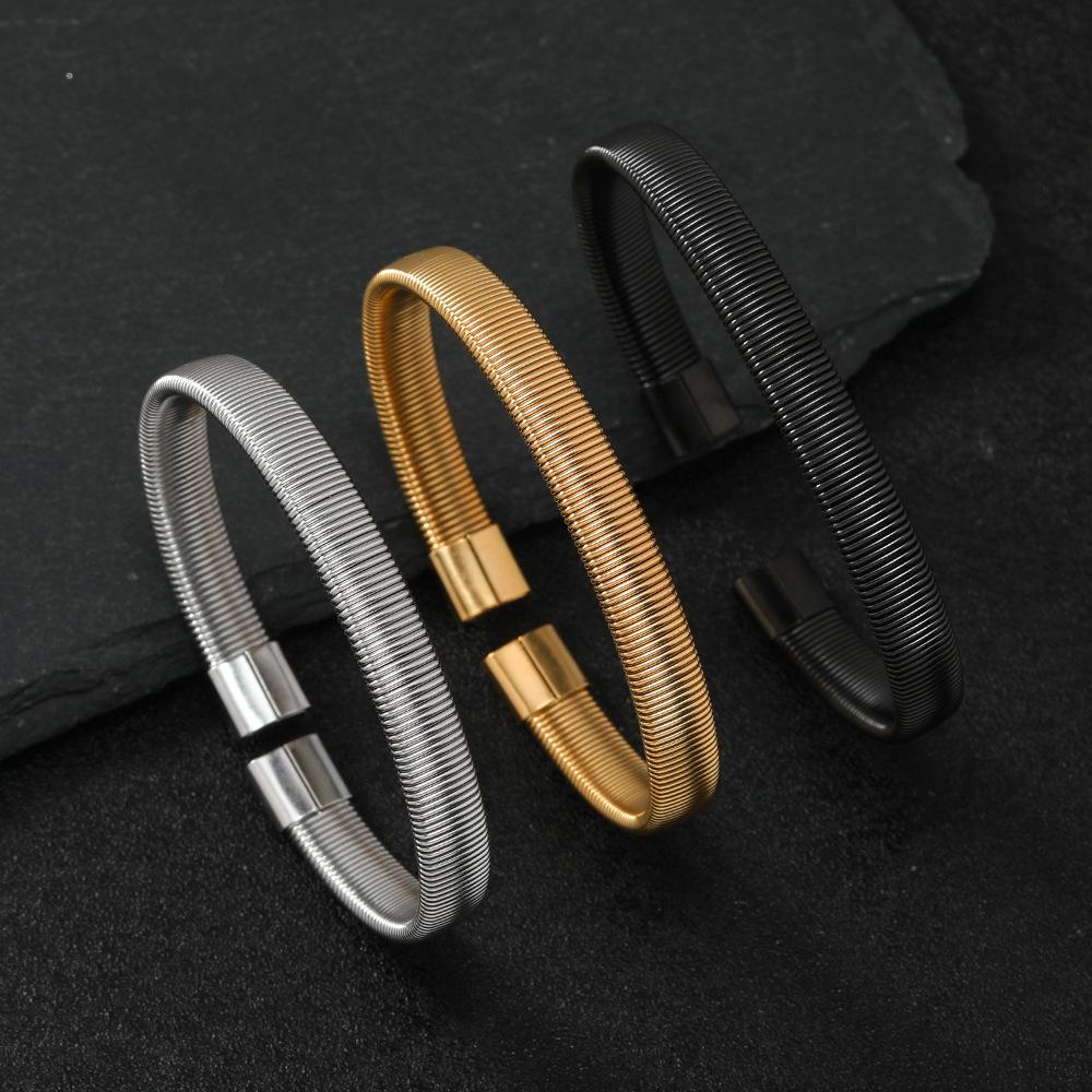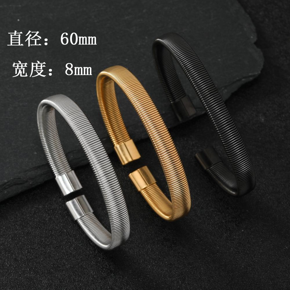Pulsera transfronteriza nueva de acero de titanio en forma de C abierta ajustable elástica simple para combinar con todo fabricante de joyería de acero inoxidable