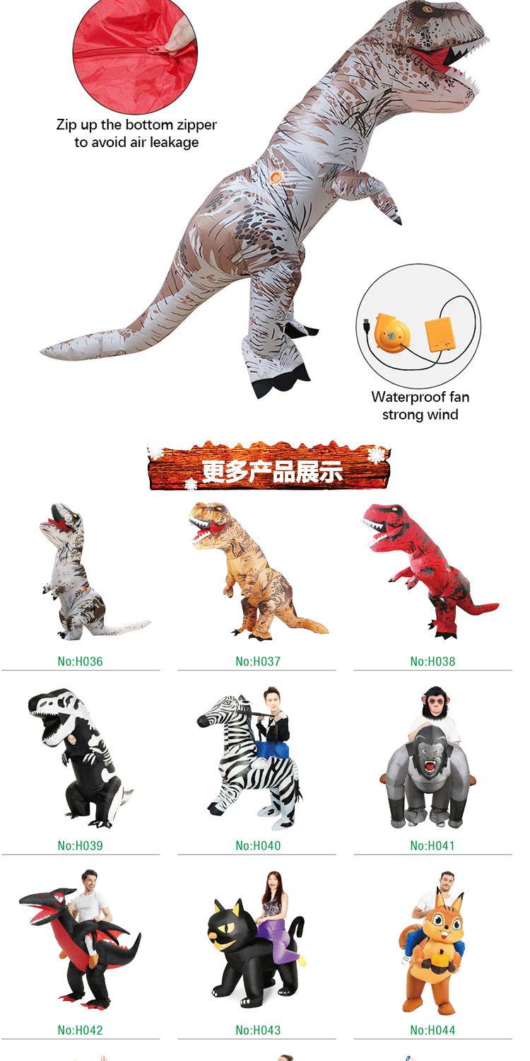 Ropa de dinosaurio divertida de Halloween transfronteriza, suministros para fiestas, ropa de muñeca inflable, disfraz inflable de tiranosaurio para jugar