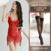 Lencería sexy Milian con bordado de cuello halter, falda de malla a la cadera, cintura reveladora, hermosa espalda, deseo puro, vestido sexy, temperamento de secretaria |