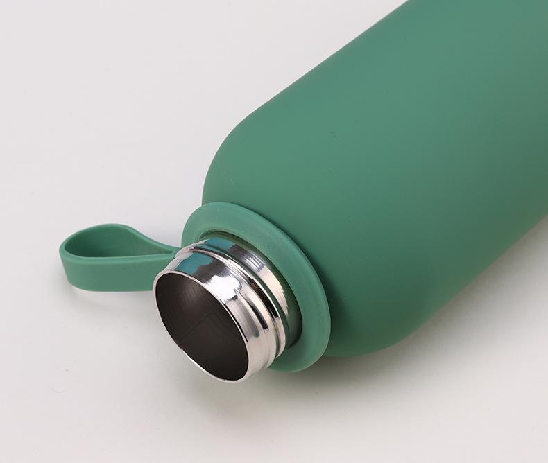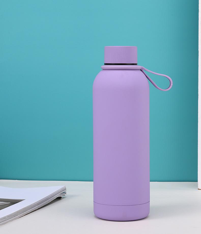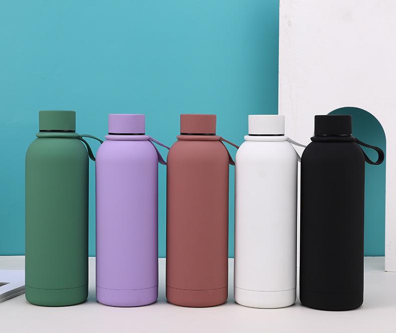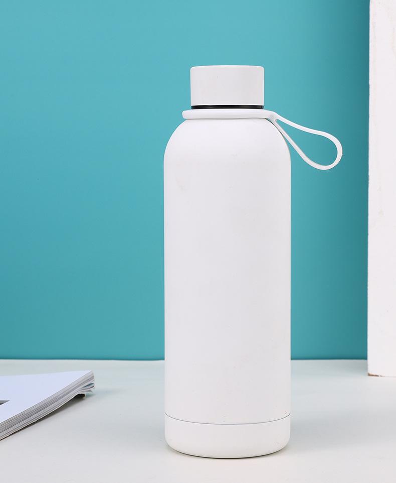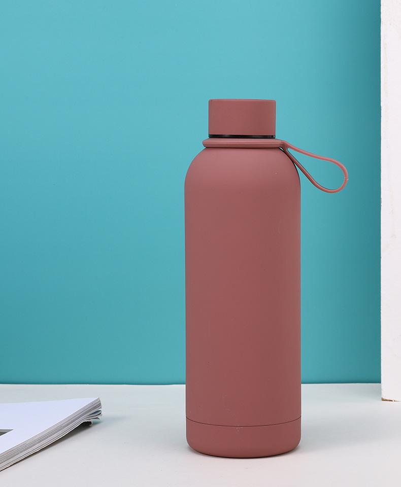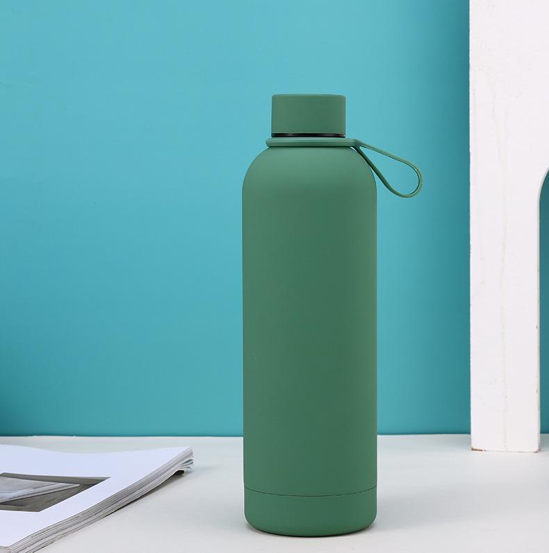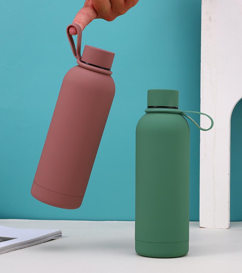 Termo de acero inoxidable de color sólido simple, gran capacidad, para estudiantes, de boca pequeña, botella de agua deportiva, asa para exteriores, olla de escalada portátil