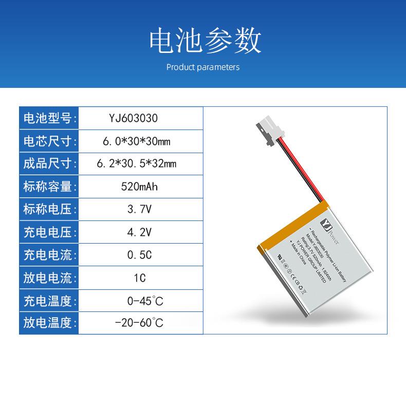 Batería de polímero de litio Yanjiu 603030, grabadora de conducción, posicionamiento GPS, batería de iones de litio de 500 mAh. Fabricantes.