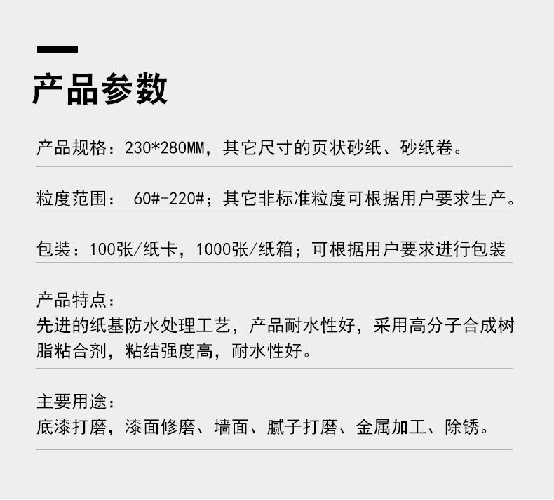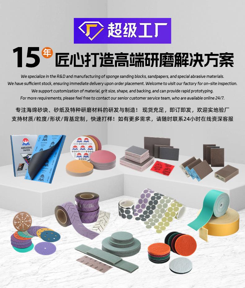 La empresa produce principalmente papel de lija de esponja Asian Warrior, bloque de lija de esponja Asian Warrior, papel de lija piramidal, papel de lija metalográfico, papel de lija adhesivo con reverso de terciopelo, papel de lija abrasivo al agua, papel de lija abrasivo en seco, estropajos, papel de lija de rejilla, banda de lija, cera de pulido y otros consumibles de pulido. Los productos se venden ampliamente en plataformas en línea y fuera de línea en todo el país y se exportan a Europa, América, Australia, Japón, Corea del Sur, Vietnam y otros países.