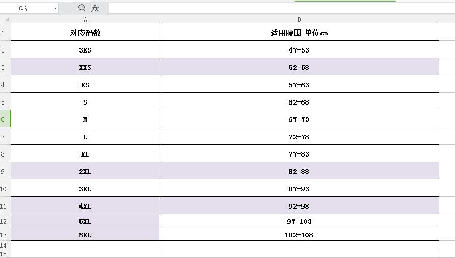XXS, XS, S, M, L, XL, 2XL, 3XL, 4XL