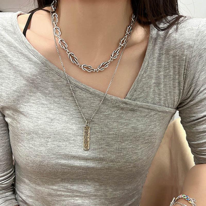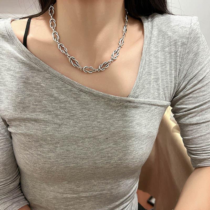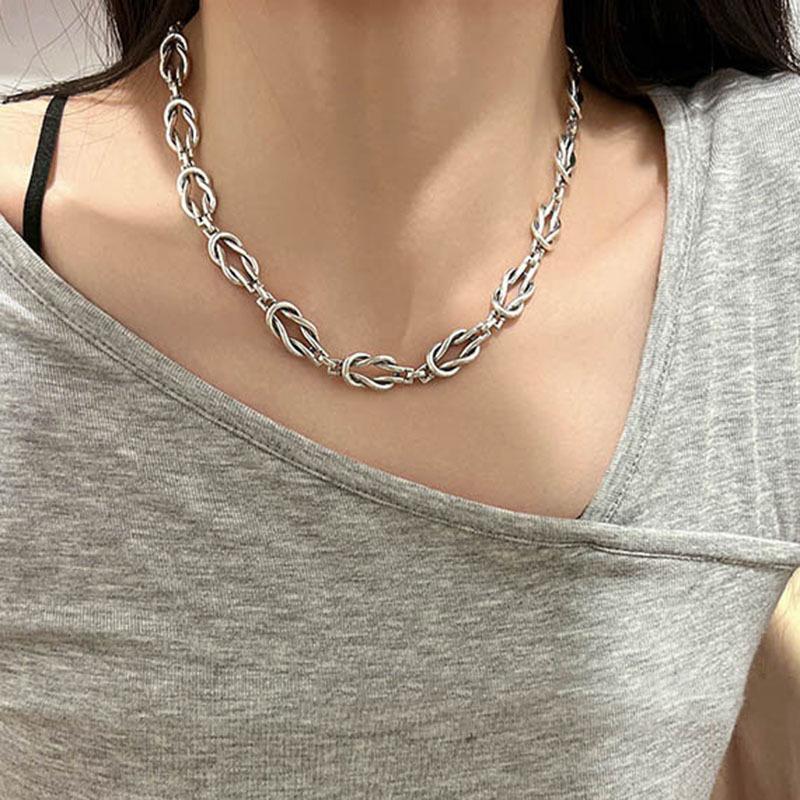 Collar de cadena gruesa personalizado con diseño de industria pesada con nudos vintage de nicho, versión coreana, para amantes de las mujeres, cadena de clavícula.