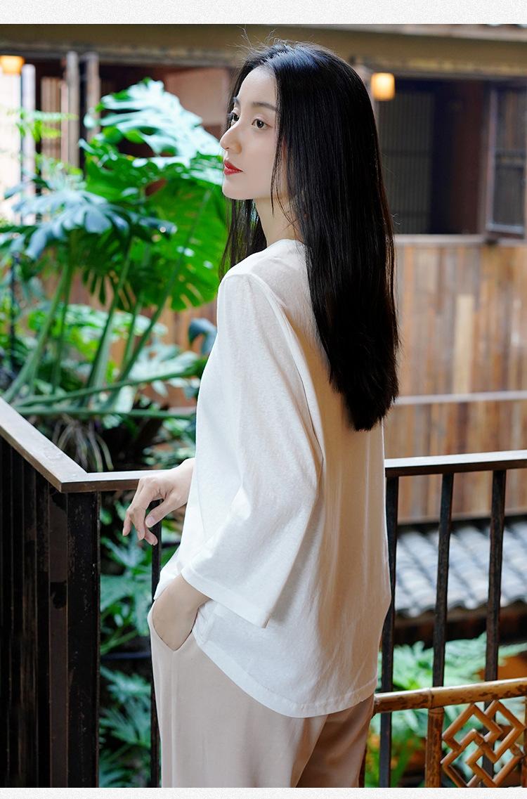 Para este top, utilizamos tecnología especial para crear un top de punto con textura de algodón y lino utilizando algodón refinado y fibras de celulosa regenerada.