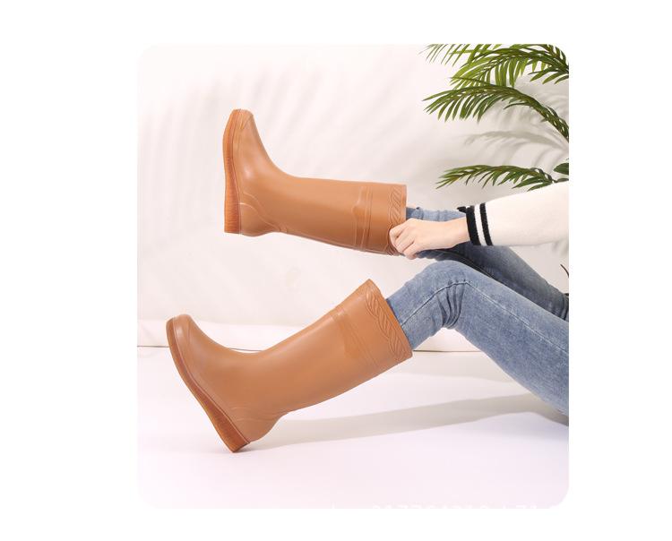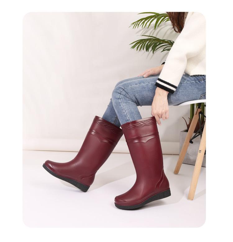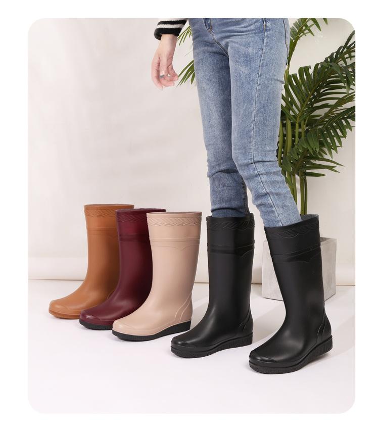 Botas de Lluvia Largas de Moda Transfronteriza, Botas de Lluvia Extra Altas para Mujer, Zapatos de Agua Planos de Algodón Aterciopelado Plus, Zapatos de Goma Antideslizantes para Mujer, Botas Escarchadas