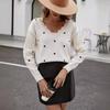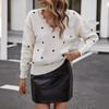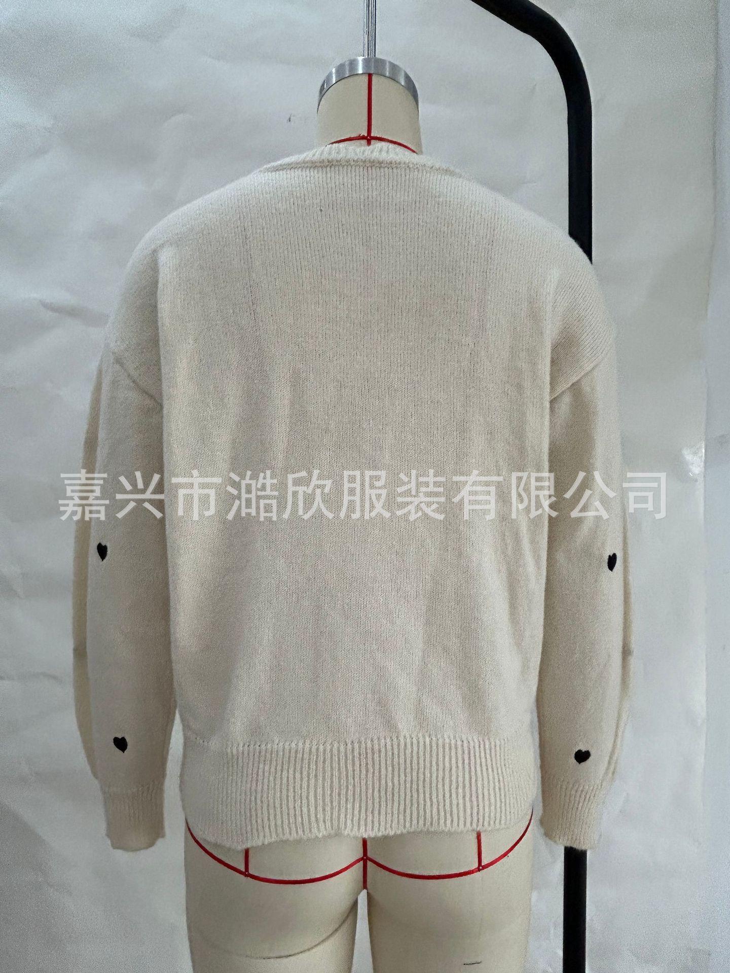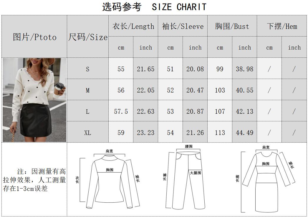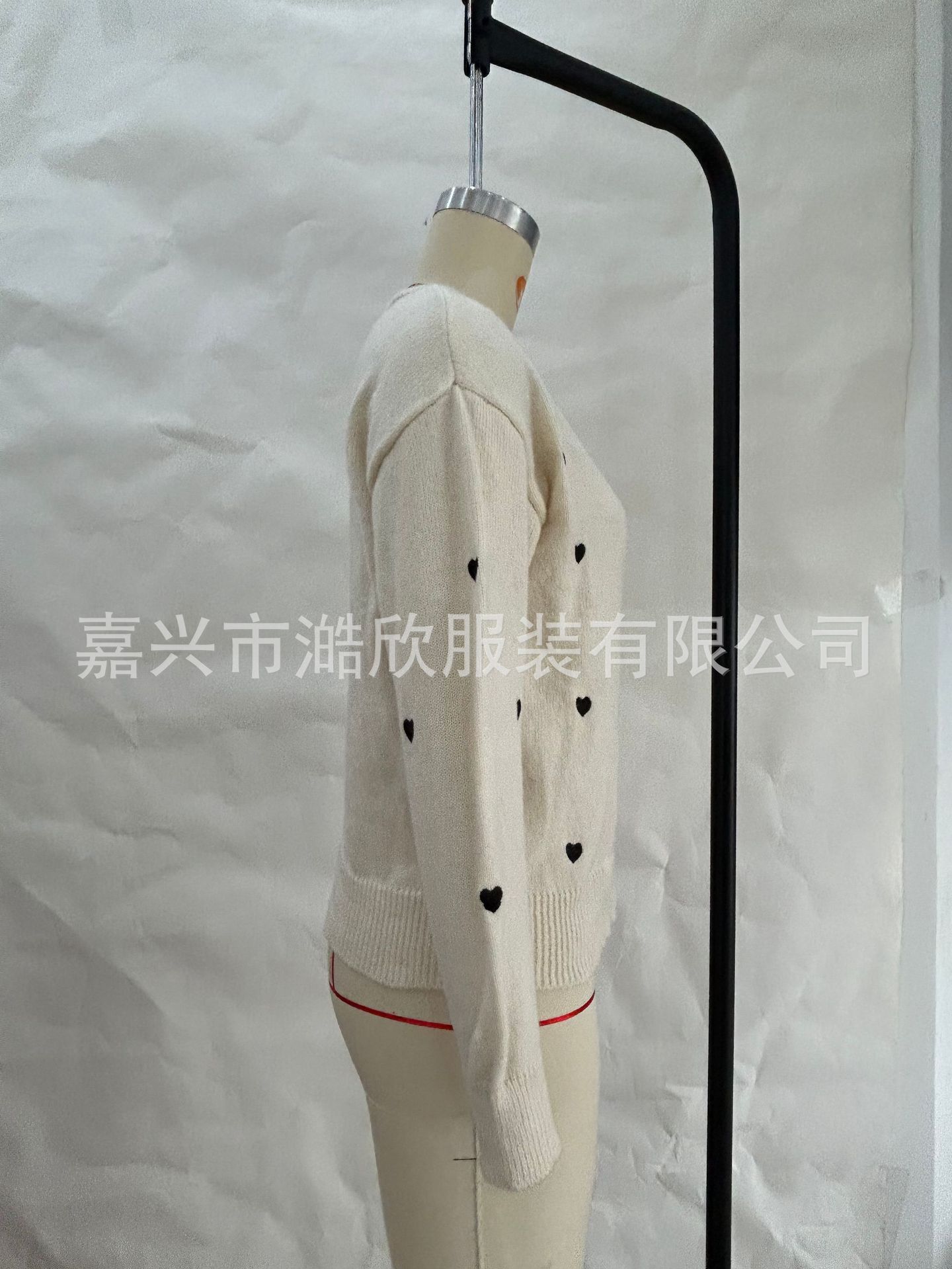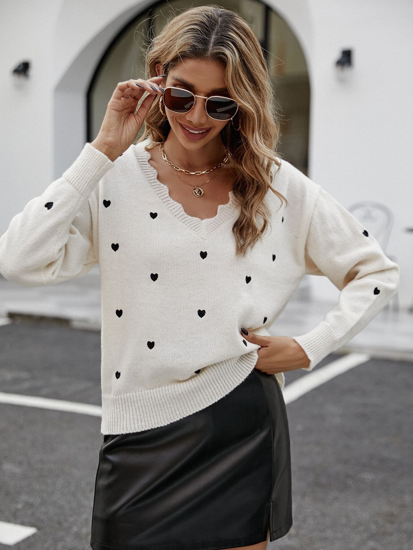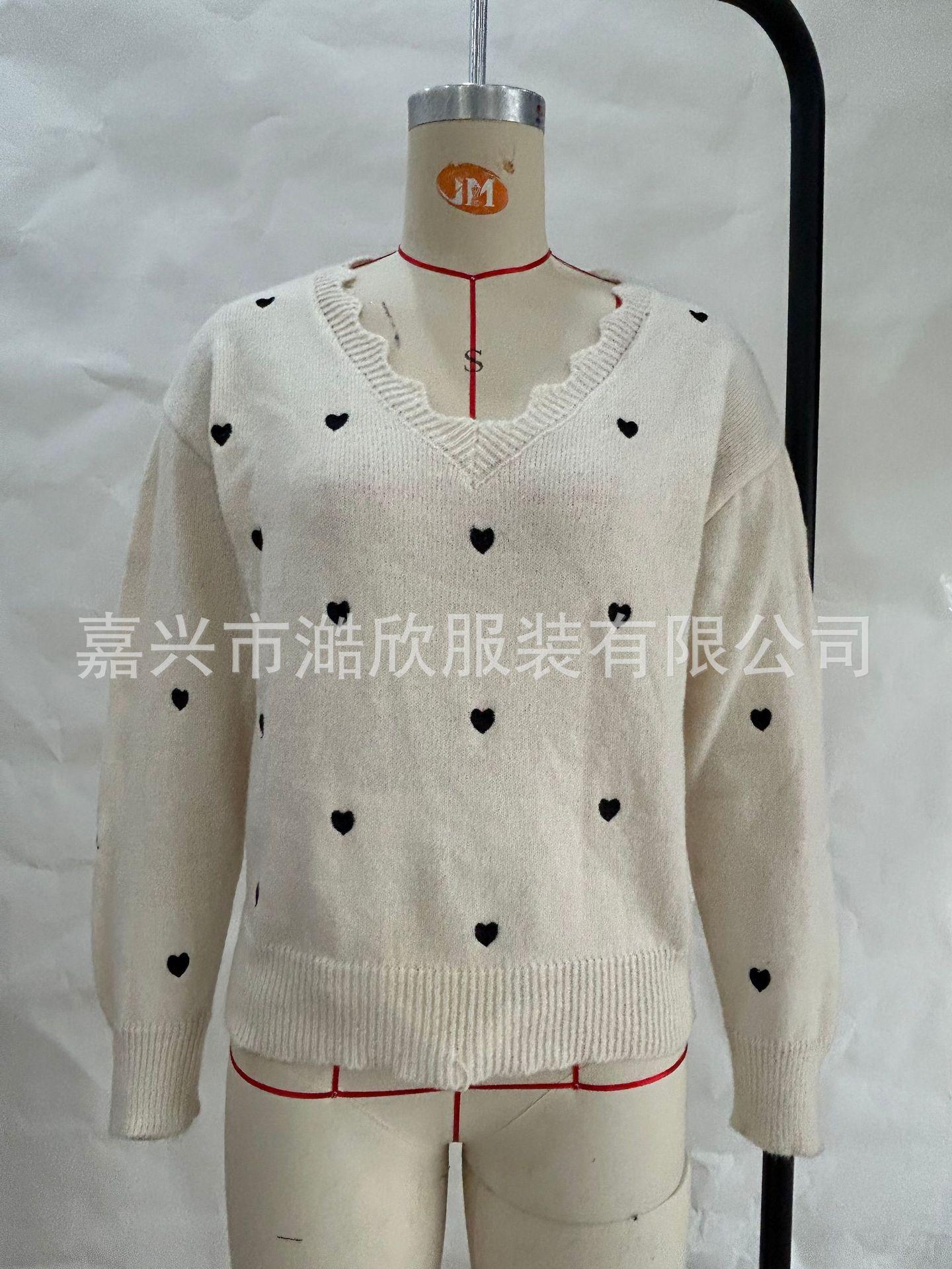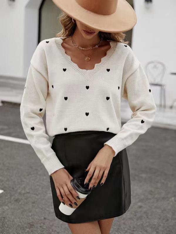 Simple Nuevo Punto de Punto Transfronterizo para Mujer Jacquard de Corazones Cuello en V Hongo Talla Grande Suéter Holgado Versátil