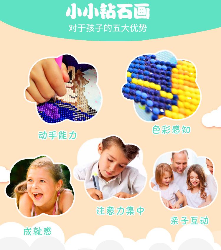 Pintura de Diamantes para Niños Enmarcada Venta al por Mayor Pegatinas de Diamantes de Dibujos Animados Pintura de Diamantes Hecha a Mano Herramientas para DIY