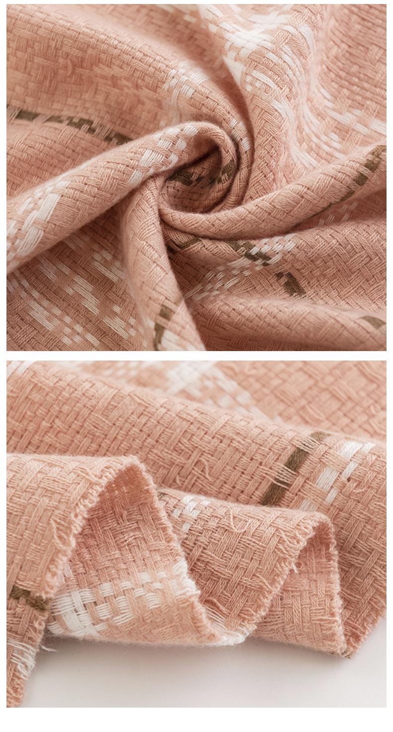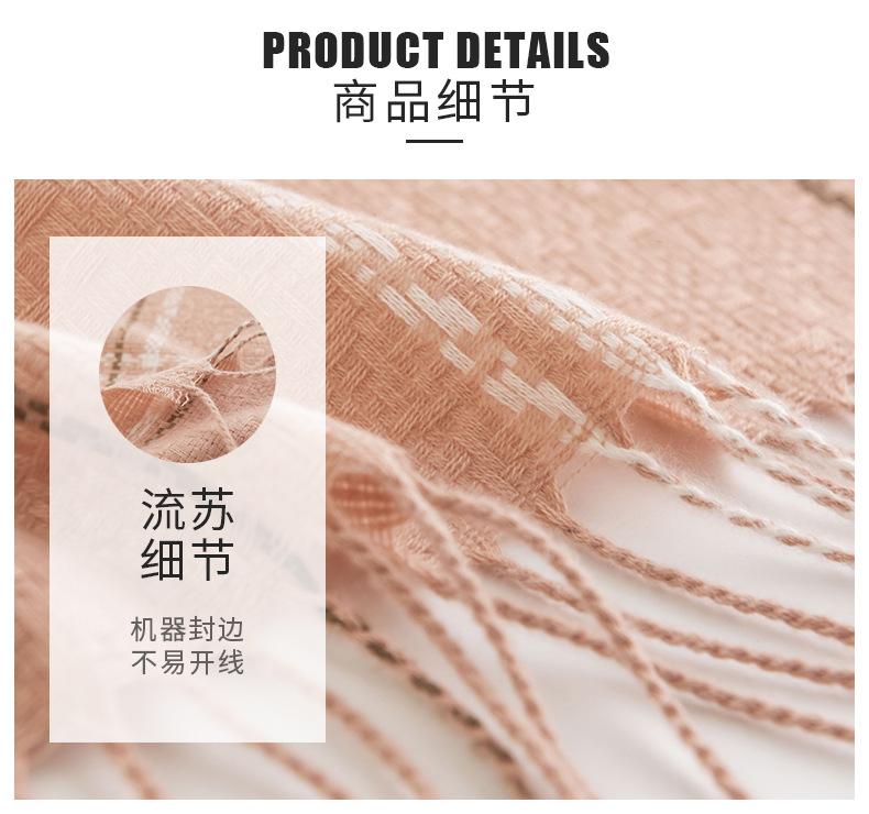 Bufanda de algodón y lino transfronteriza para mujer en primavera y otoño, color puro, bufanda de gasa japonesa y coreana, protección solar, chal cálido, bufanda de cuello simple con borde de piel.