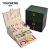 Caja de cuero para guardar joyas, collares y pendientes de tres capas con espejo, caja de almacenamiento para guardar joyas, cajones y cajas de almacenamiento.