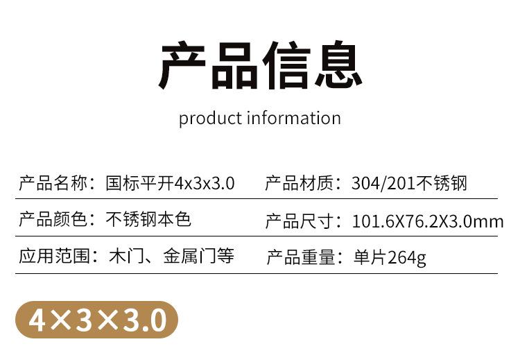 National standard 201 stainless steel 4*3*3.0 (1 piece including screws), National standard 304 stainless stee...
