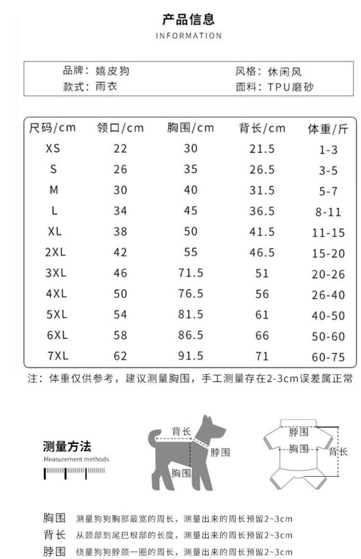 S: Back length 26.5 (recommended weight 1.50 kg-2.50 kg