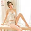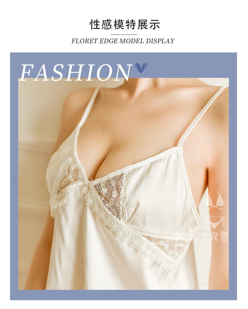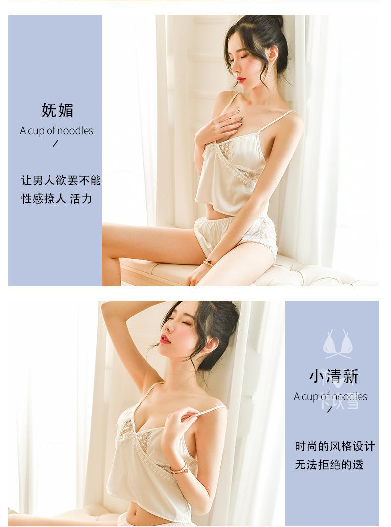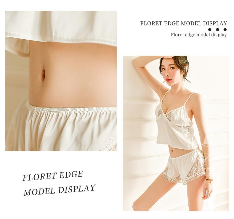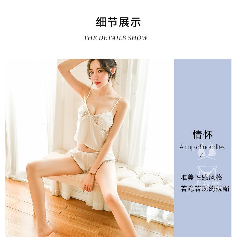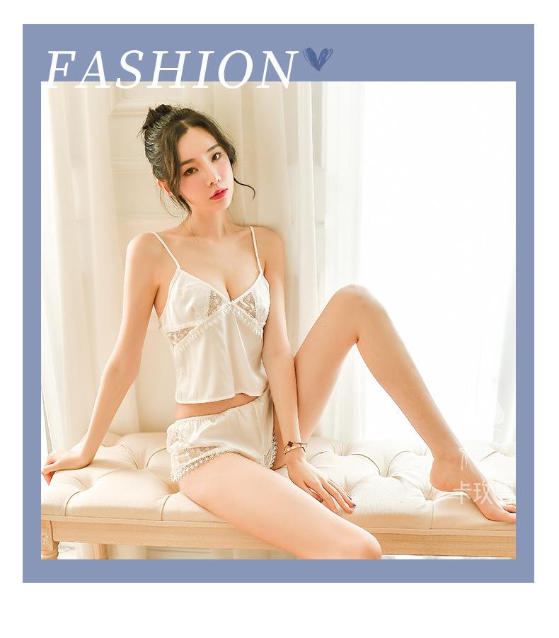 Camisola Sexy Ropa de Dormir Conjunto para Casa Color Sólido Encaje Transparente Shorts Sedoso Seductor Pasión Pantalones para Dormir 1249