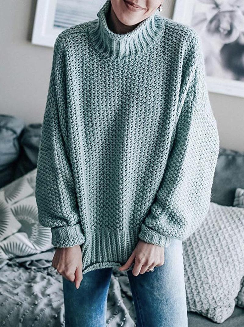 2025 Exportación Transfronteriza Nuevo Suéter para Mujer Europeo y Americano Otoño e Invierno Amazon Cuello Alto Grueso Suéter Holgado de Punto para Mujer Ropa de Mujer