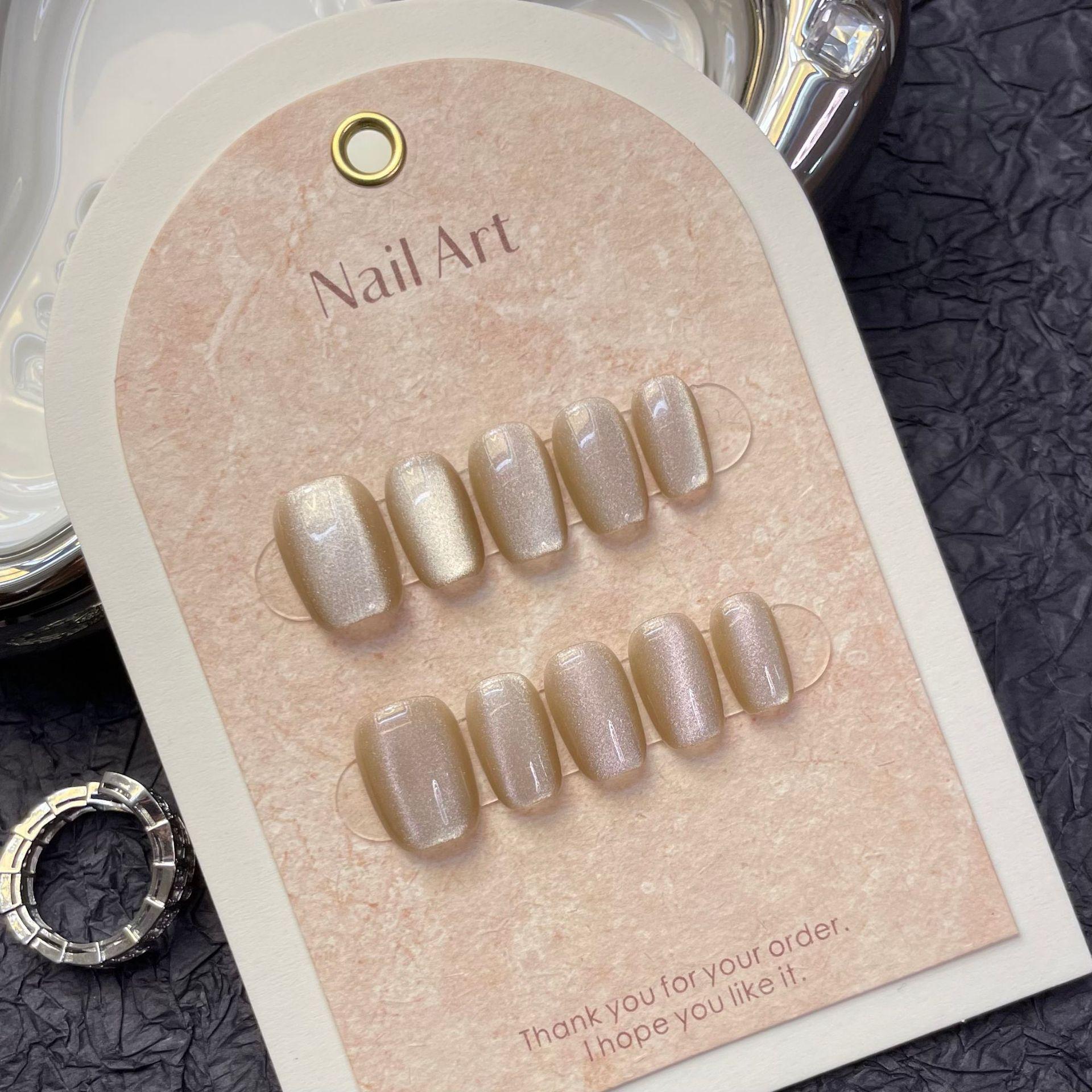 Arroz glutinoso Piedra lunar suave combinación de colores ojo de gato brillante uña corta dulce combina con todo Blanco para llevar uña blanco porcelana ojo de gato corto