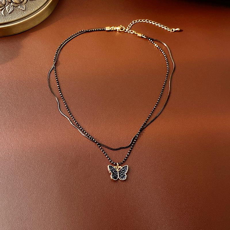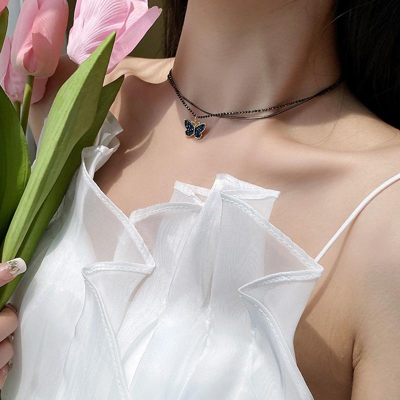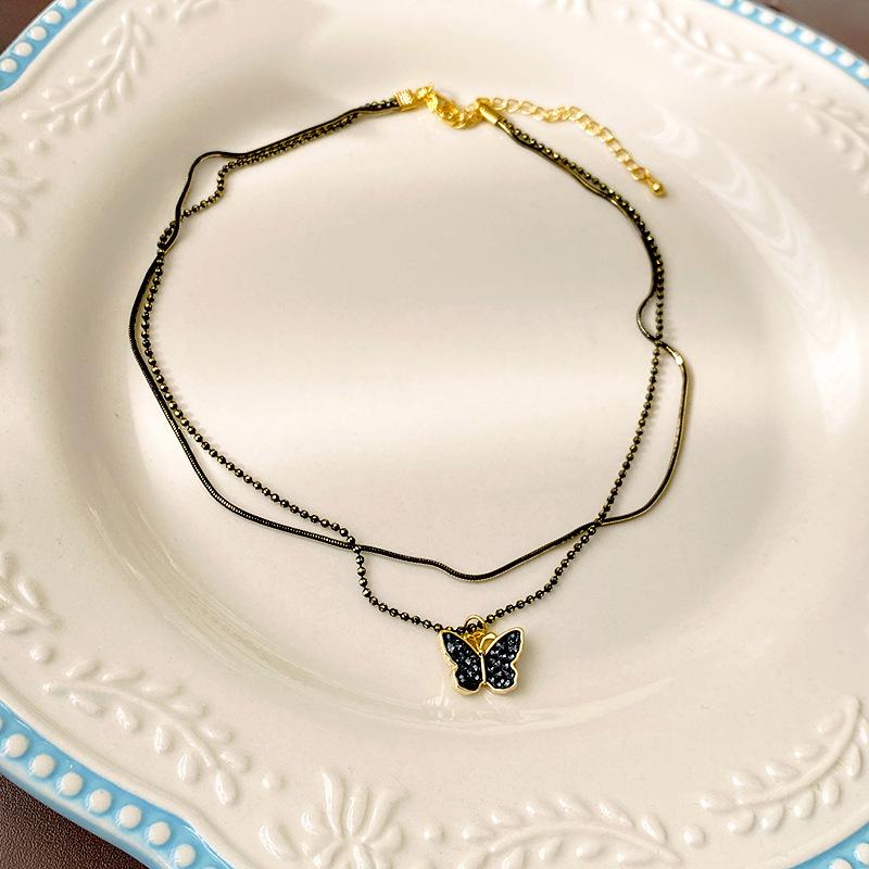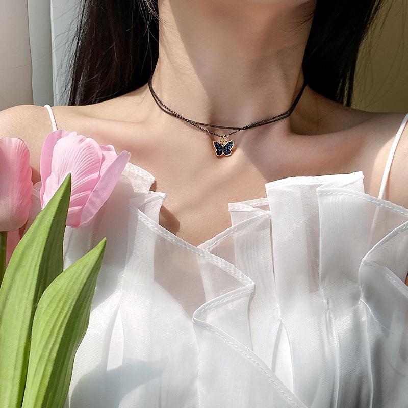 Dulce Collar de Mariposa Negra Estilo Cool Cadena de Clavícula Niche de Personalidad Estilo Frío Moda Lujo Ligero Collar de Alto Nivel