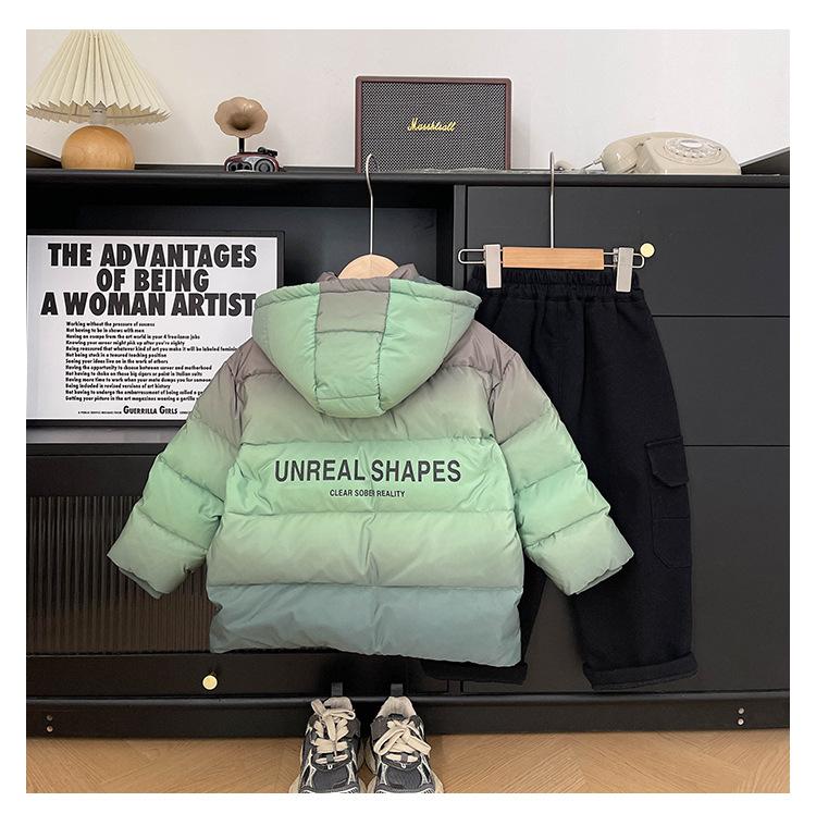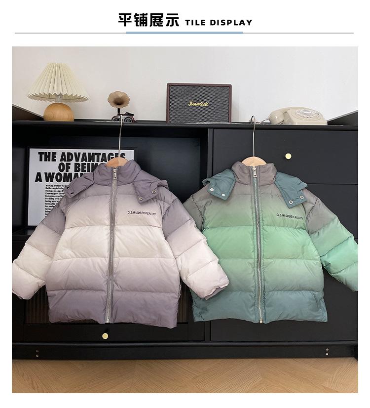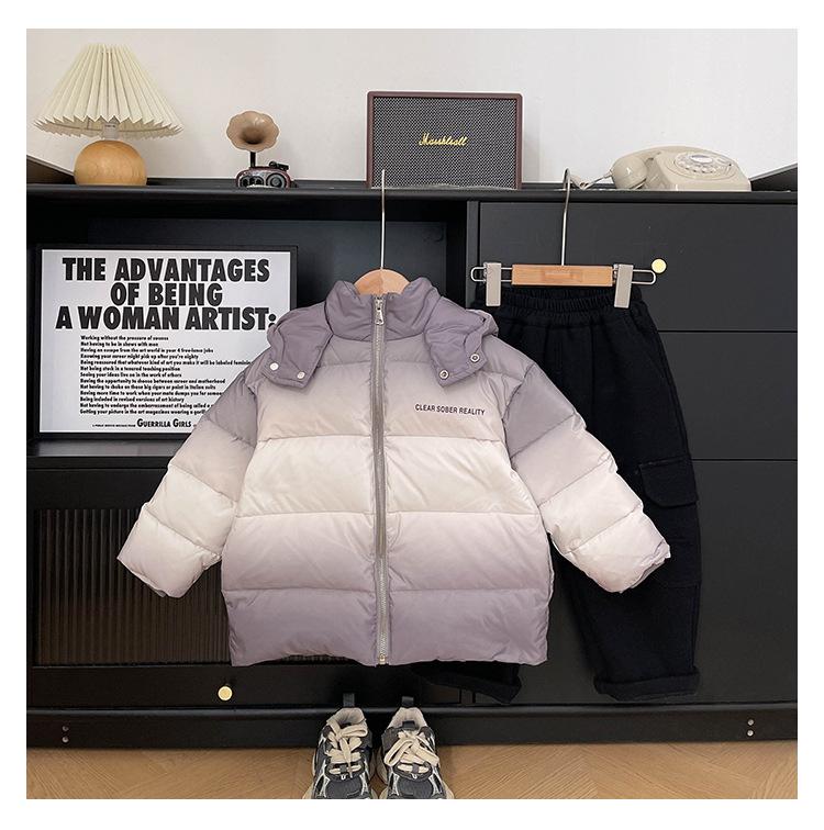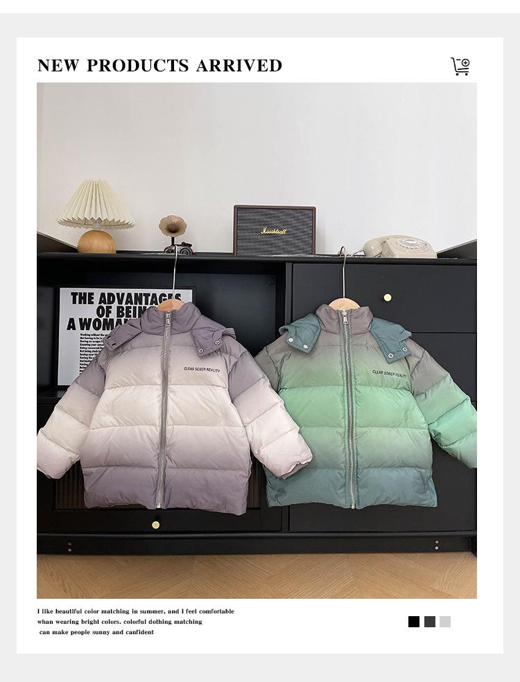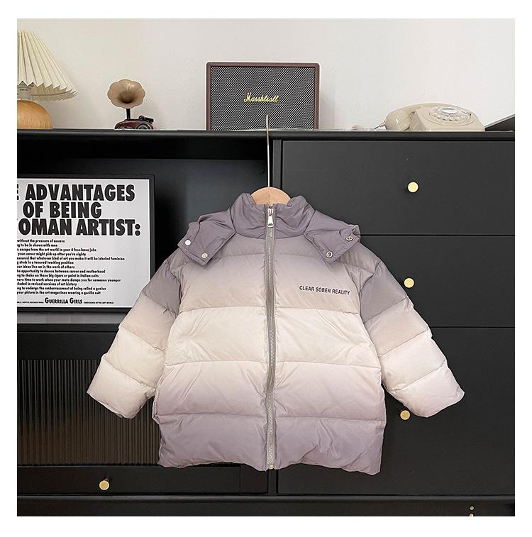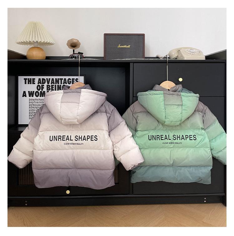 Xianao 2023 Invierno nuevo abrigo de plumón para niños Chaqueta de moda coreana de longitud media con capucha degradada para niños
