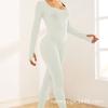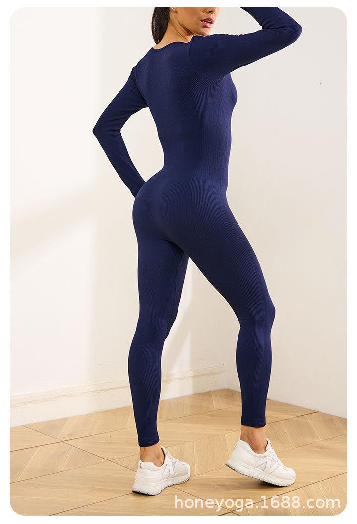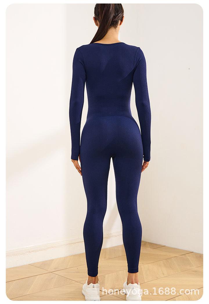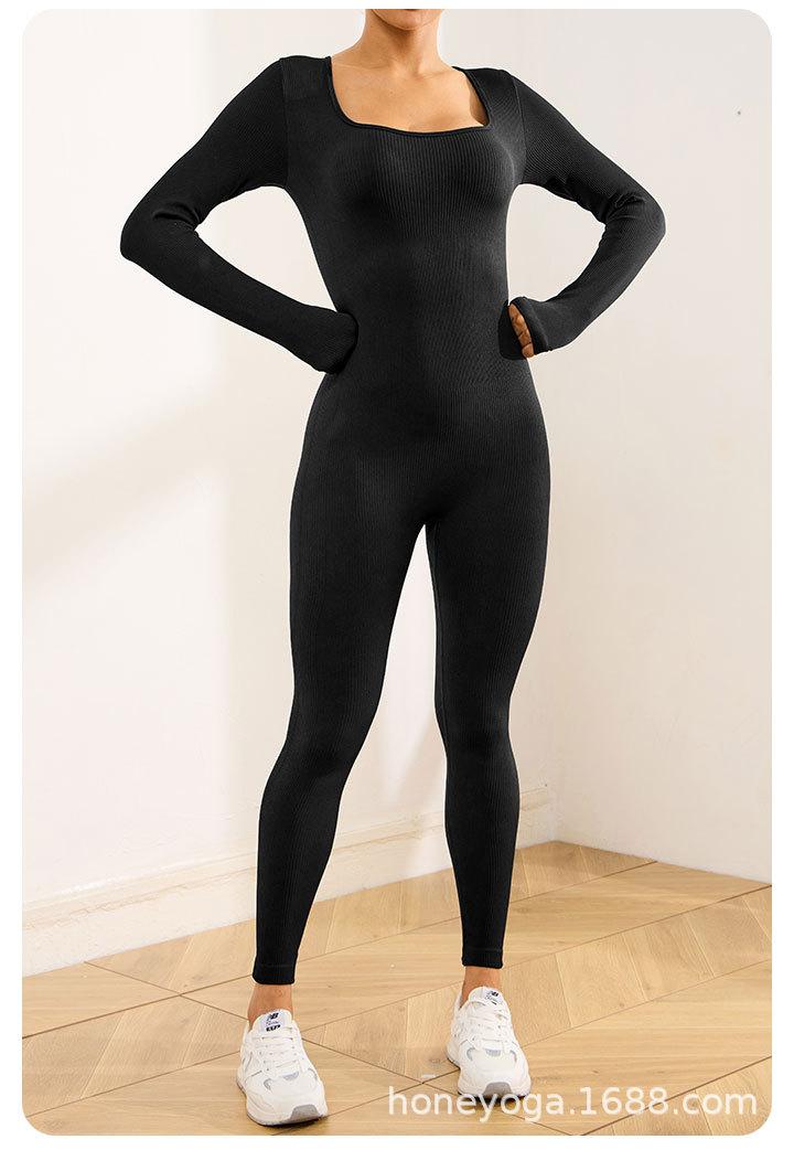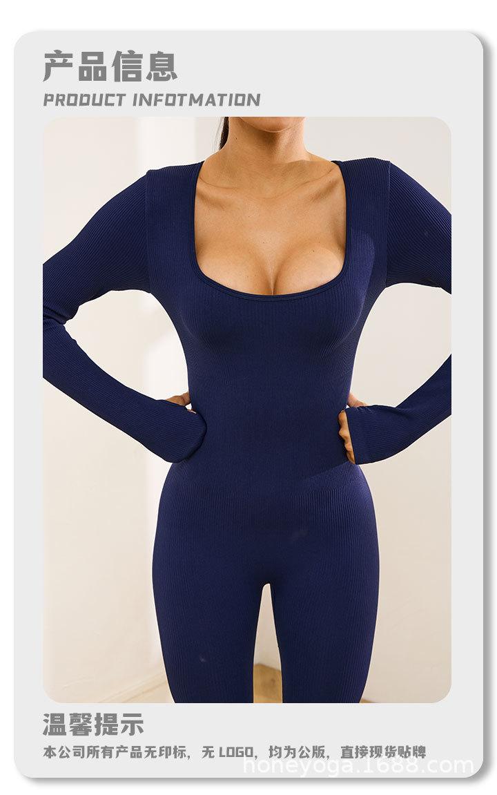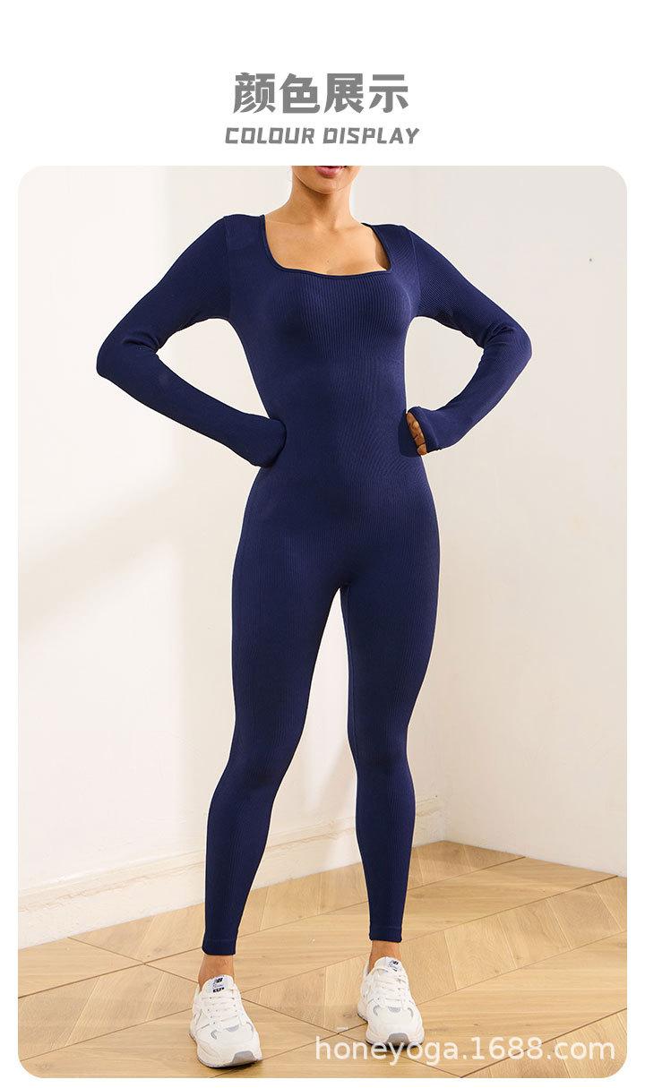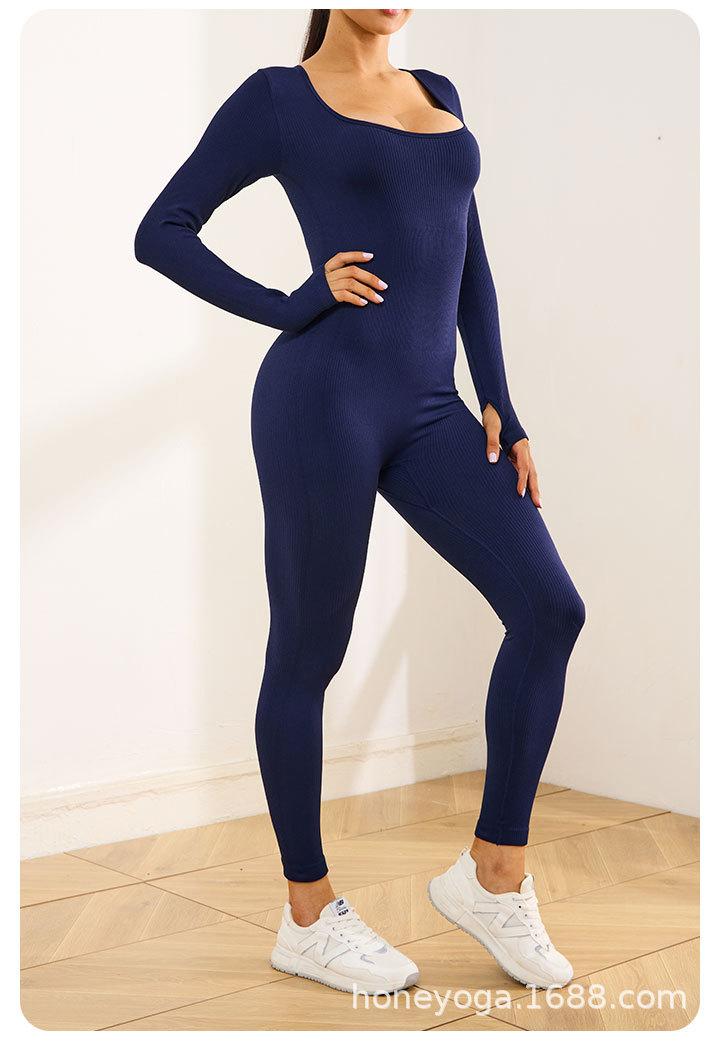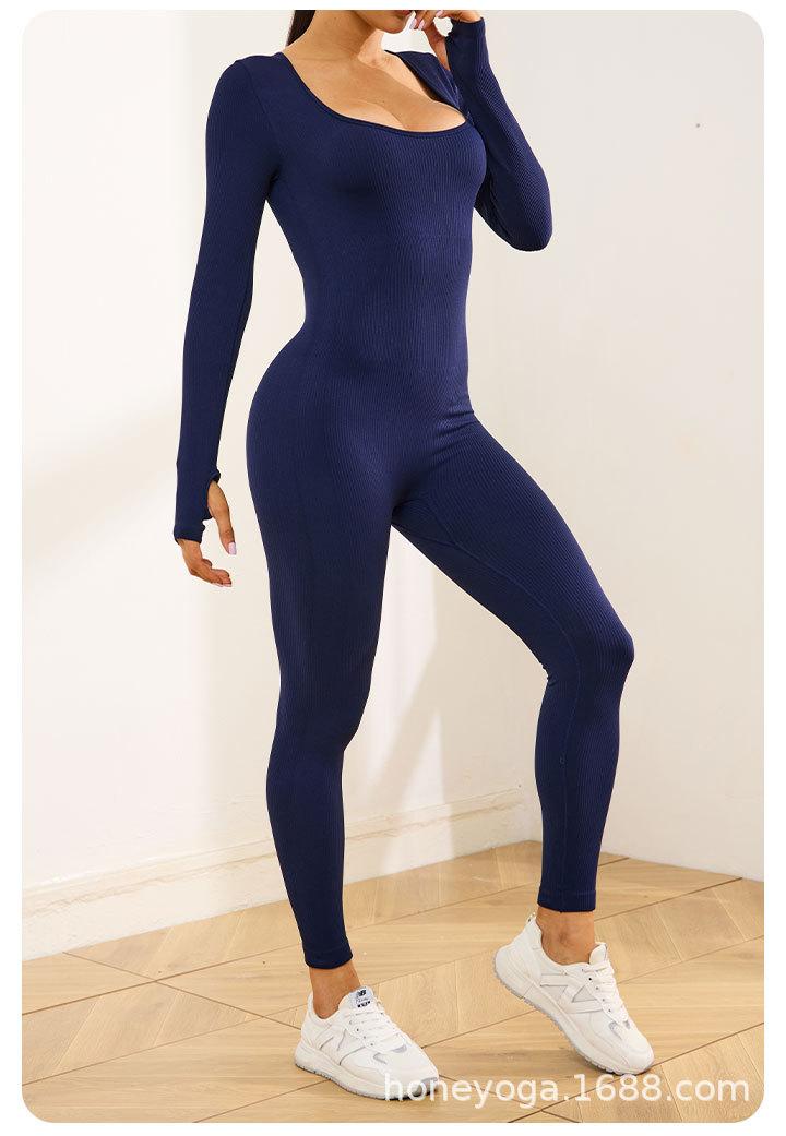 Ropa de yoga de una pieza transfronteriza europea y americana de otoño e invierno 2023, mallas, pantalones de manga larga con agujeros para los dedos, deportes de secado rápido