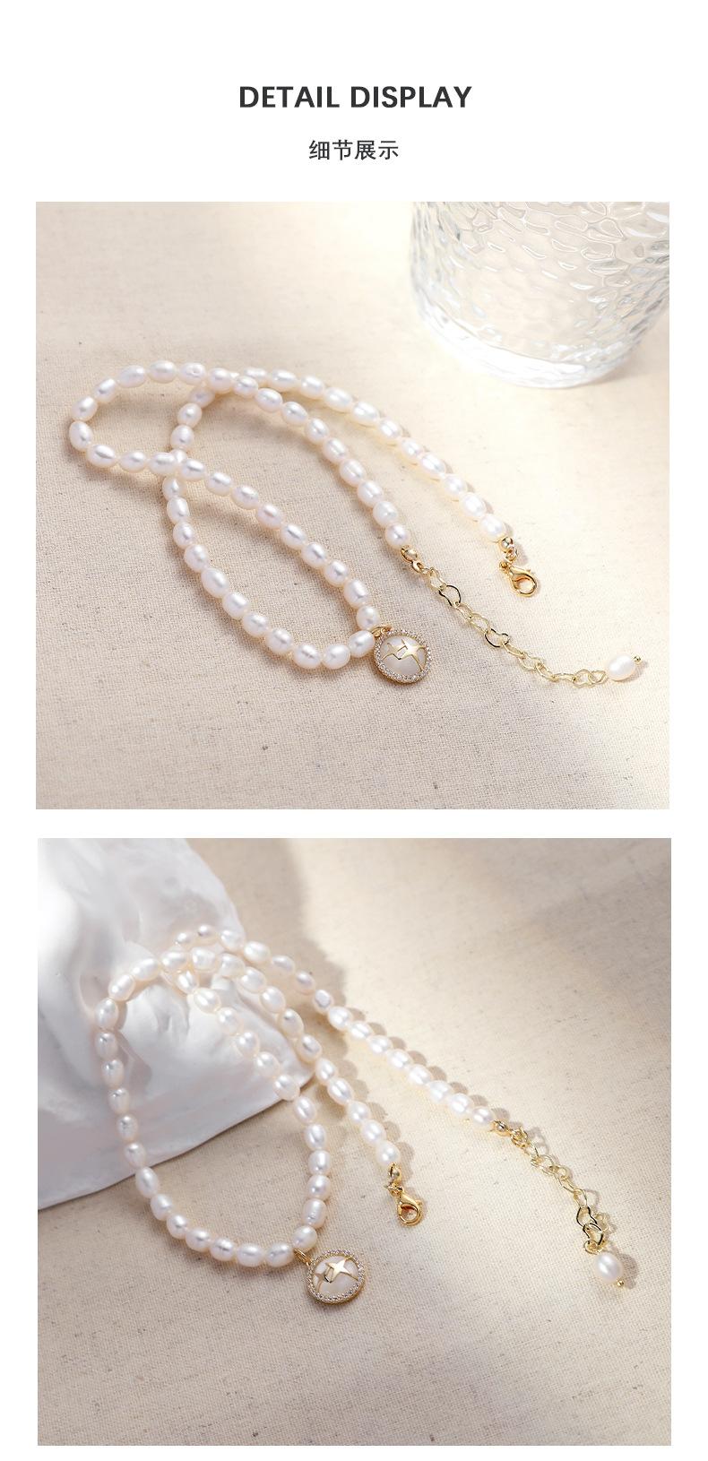 Collar de perlas de agua dulce con forma de estrella para mujer, venta al por mayor, estilo europeo y americano, con cadena de clavícula, estilo francés, dulce, fresco y ligero, de lujo.