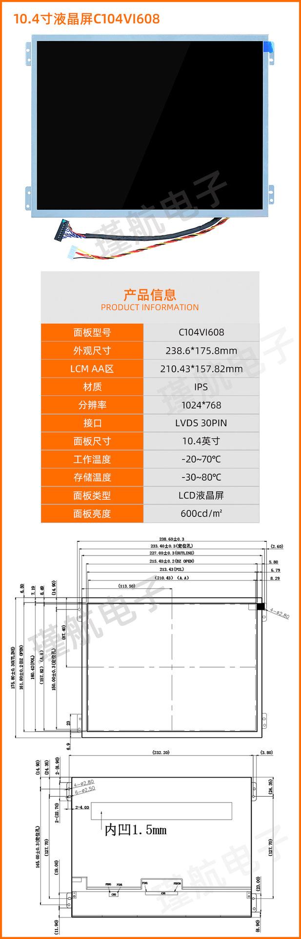 Pantalla LCD Qunchuang de 10,4 pulgadas con control industrial de 1024 x 768, brillo de pantalla, interfaz 600LVDS, pantalla LCD IPS