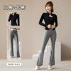 Sea rock ash [jacket] + cocoa [bell-bottomed pants]]