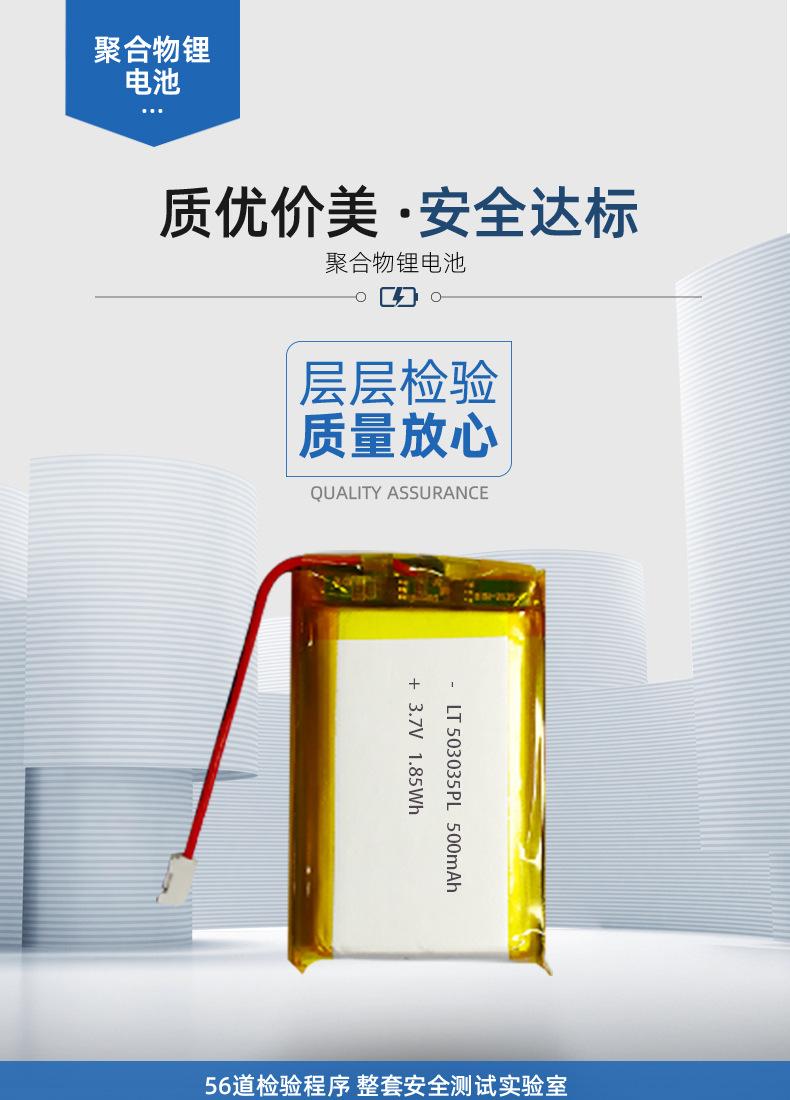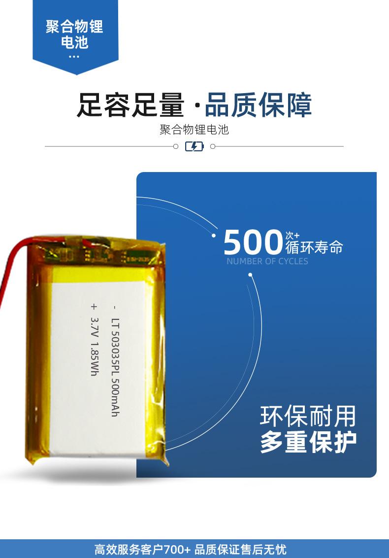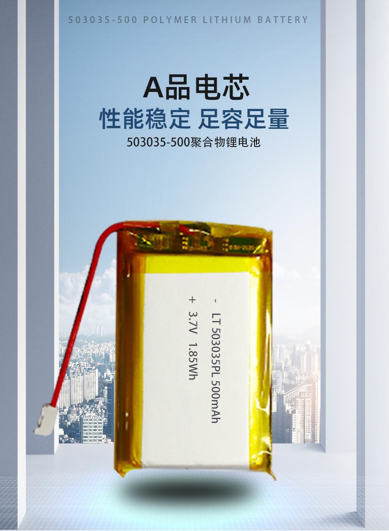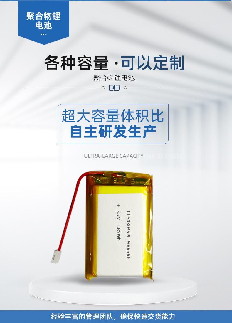 Batería de polímero de litio 503035 de fábrica, 500 mAh, para instrumento de reposición de agua, 3,7 V, para purificador de aire, juguete eléctrico.