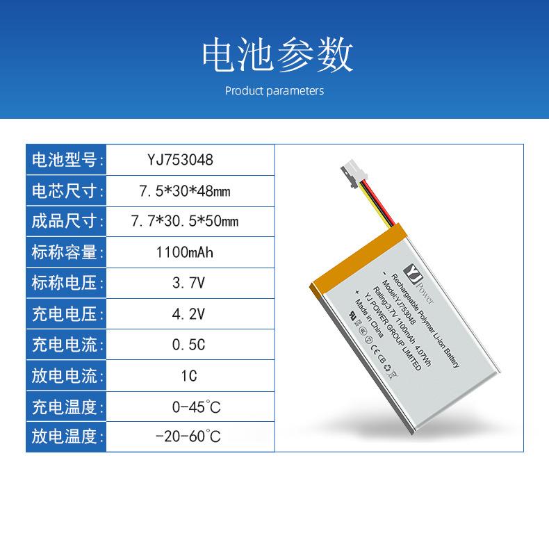 Con batería de polímero de litio certificada por BIS YJ 753048 Batería recargable de iones de litio para grabadora de conducción de alta capacidad