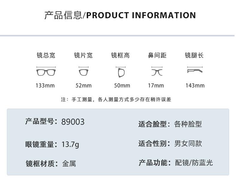 | Nuevos lentes retro TR de luz azul anti-luz para mujer, moda网红, fotografía callejera, montura de gafas sencilla, espejo plano 01247 al por mayor ¥11.00 Compre ya | Armazón de metal retro para cejas de negocios, armazón de gafas de moda, armazón de gafas Cro, para hombre, negocios K0062 ¥13.00 Compre ya | 5374TR90 Montura de gafas coreana montura negra montura para gafas de miopía ovalada recomendada por Xiaohongshu óptica lisa anti-luz azul ¥8.00 Compre ya | Gafas de carey de montura redonda superventas en Douyin, artefacto de maquillaje de los primeros ochenta, gafas anti luz azul, se pueden combinar con gafas para miopía 30333 ¥14.00 Compre ya | |