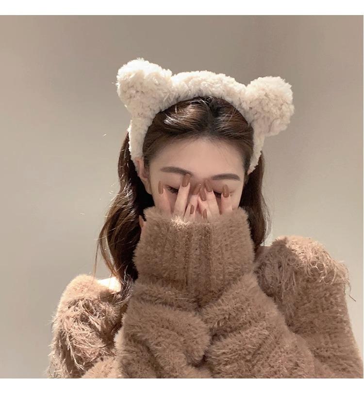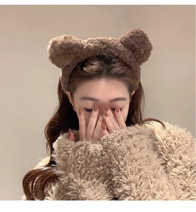 Bonita diadema de peluche con orejas de oso, diadema para lavarse la cara, horquilla para el pelo de celebridades de Internet, flequillo, accesorios para el cabello, banda para el cabello para mujer