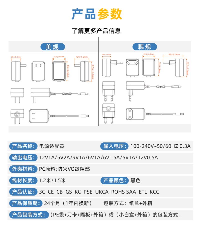 12V1A adapter, 5V2A adapter, 9V1A adapter