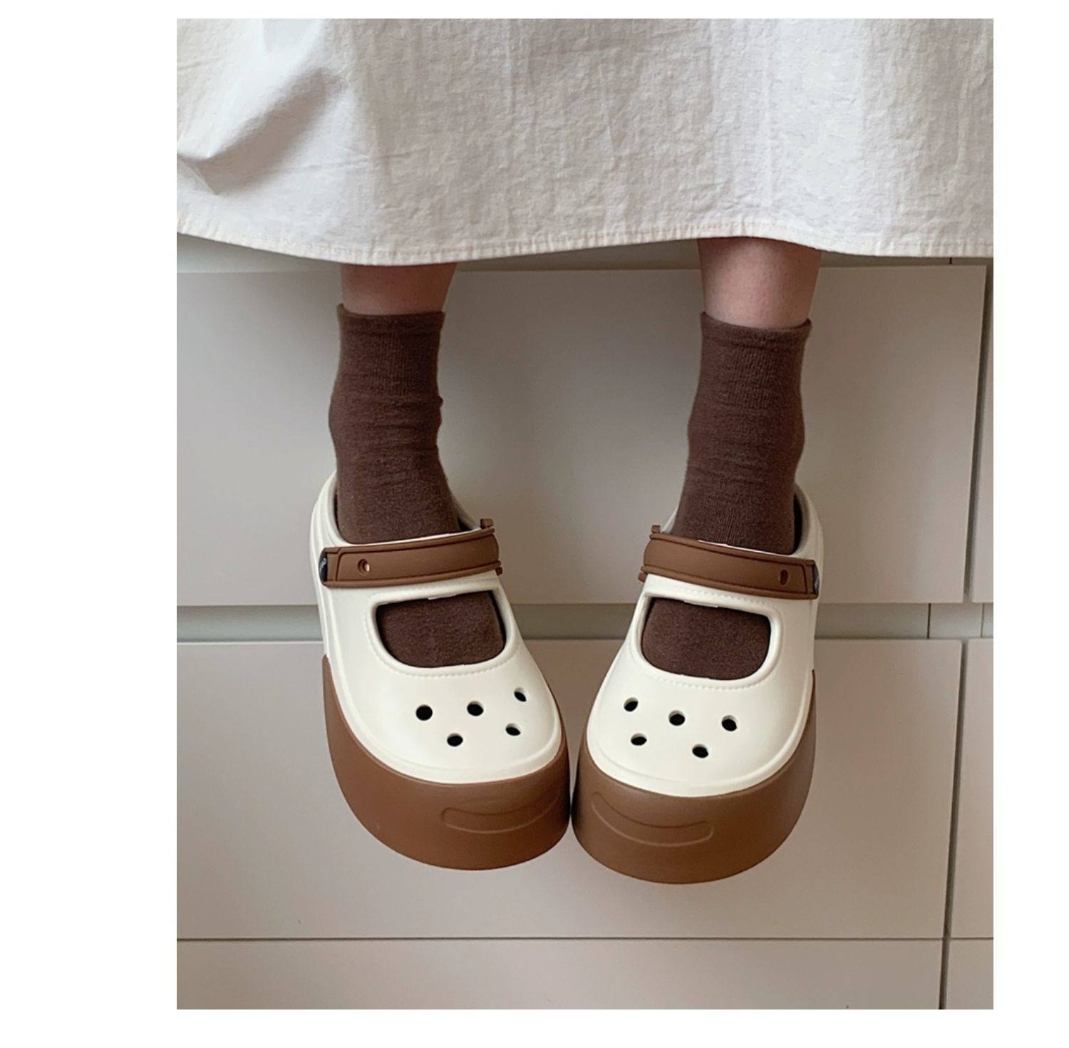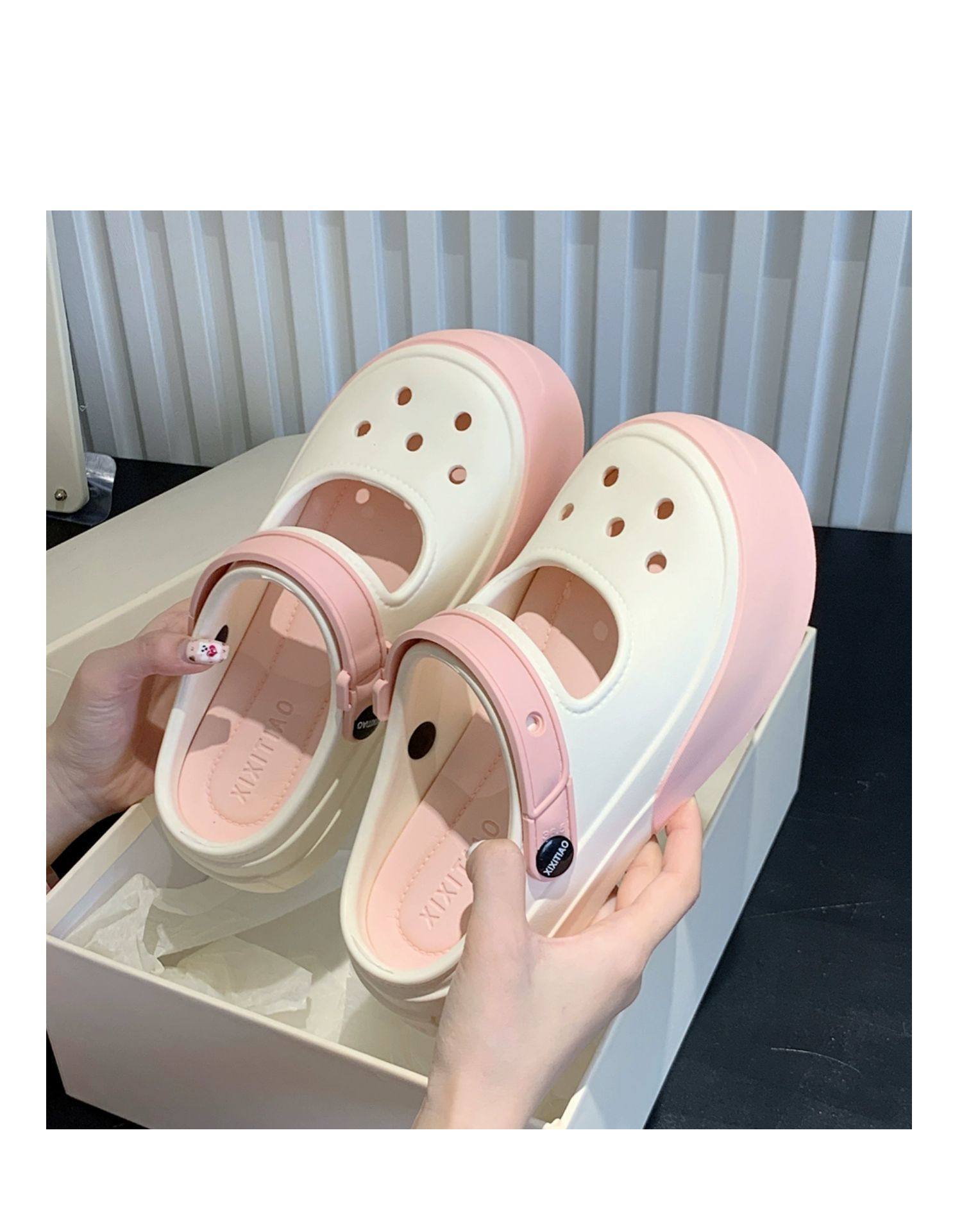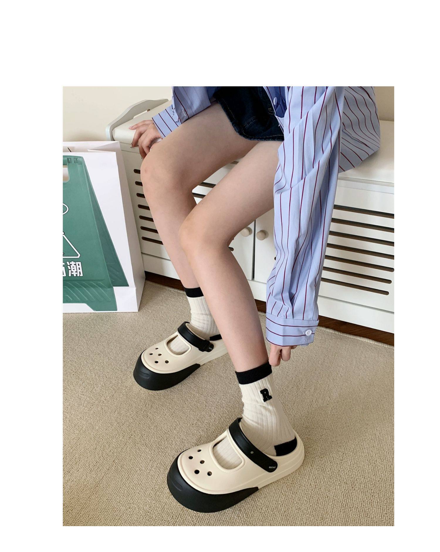 Celebridad de internet Nuevo ins moderno aumento de altura Mary Jane medias zapatillas verano moda ropa exterior antideslizante sandalias de playa para vacaciones para mujeres