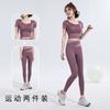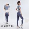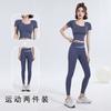 Traje Nuevo de Manga Corta 2025 Pantalones de Yoga de Cintura Alta Levanta Caderas con Bloques de Color Ajustado de Alta Elasticidad Control de Abdomen Secado Rápido Traje de Fitness para Mujer