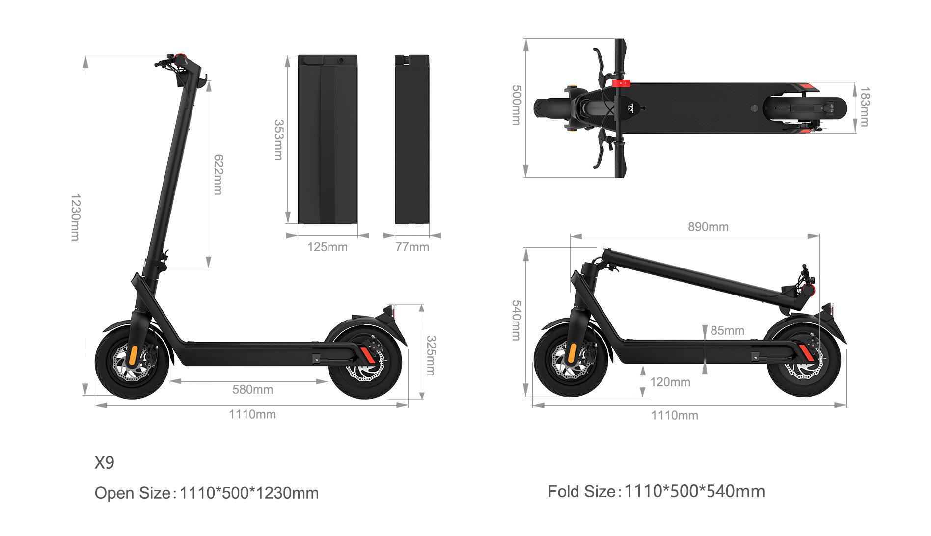 X11 gray/10 inch/with shock absorption/36V 13AH/endurance 50km, X10GT off-road/black/front and rear with shock...